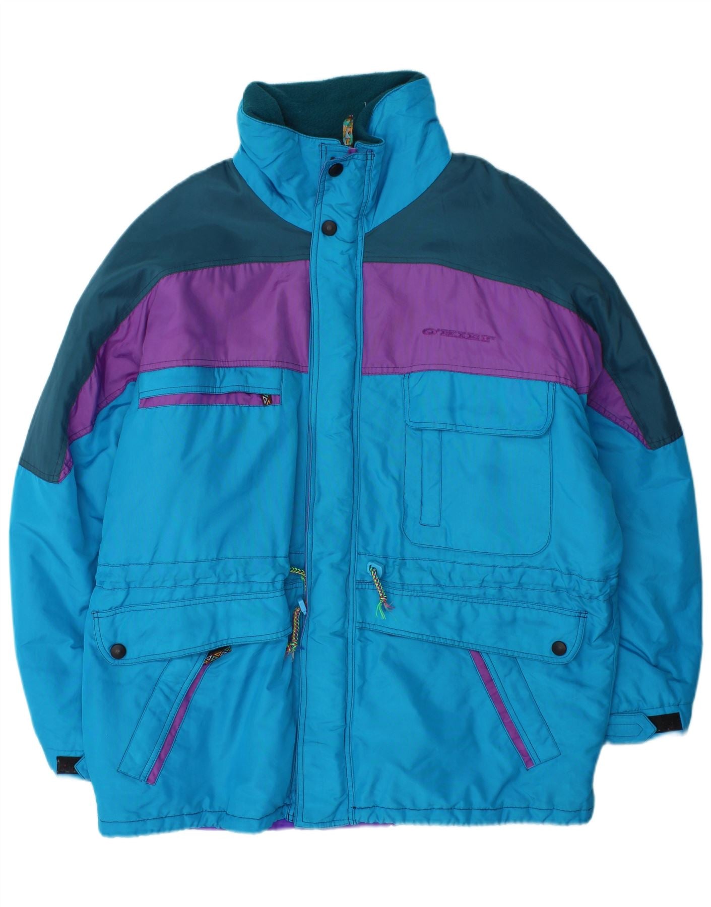 O'KIEF Herren-Skijacke mit lockerer Passform und Kapuze, UK 38, Mittelblau, Farbblock