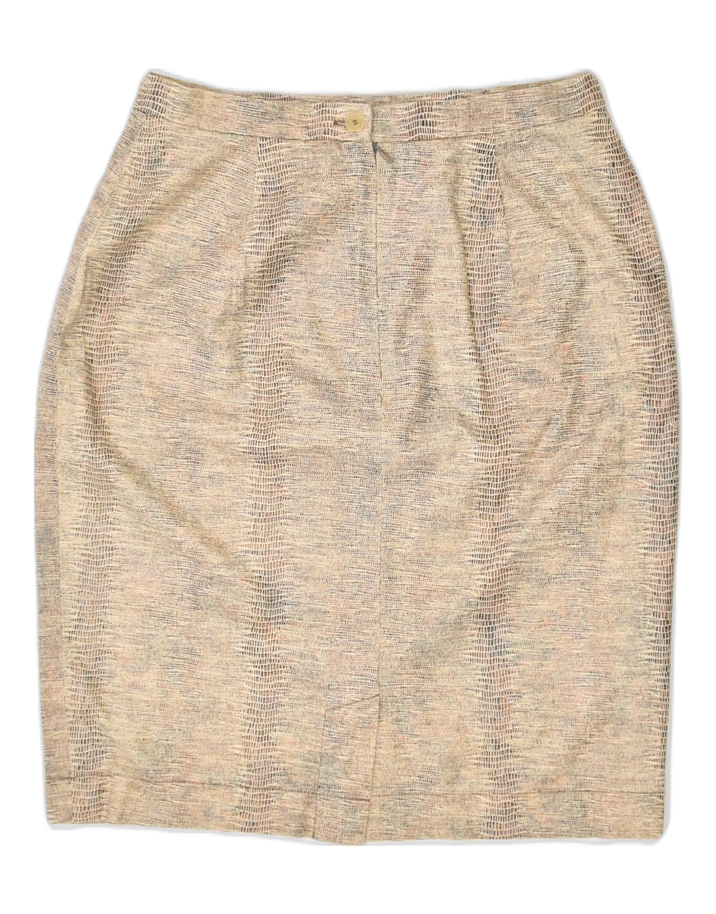 OLSEN Damen gerader Rock UK 10 Small W26 Beige Baumwolle mit Animal-Print