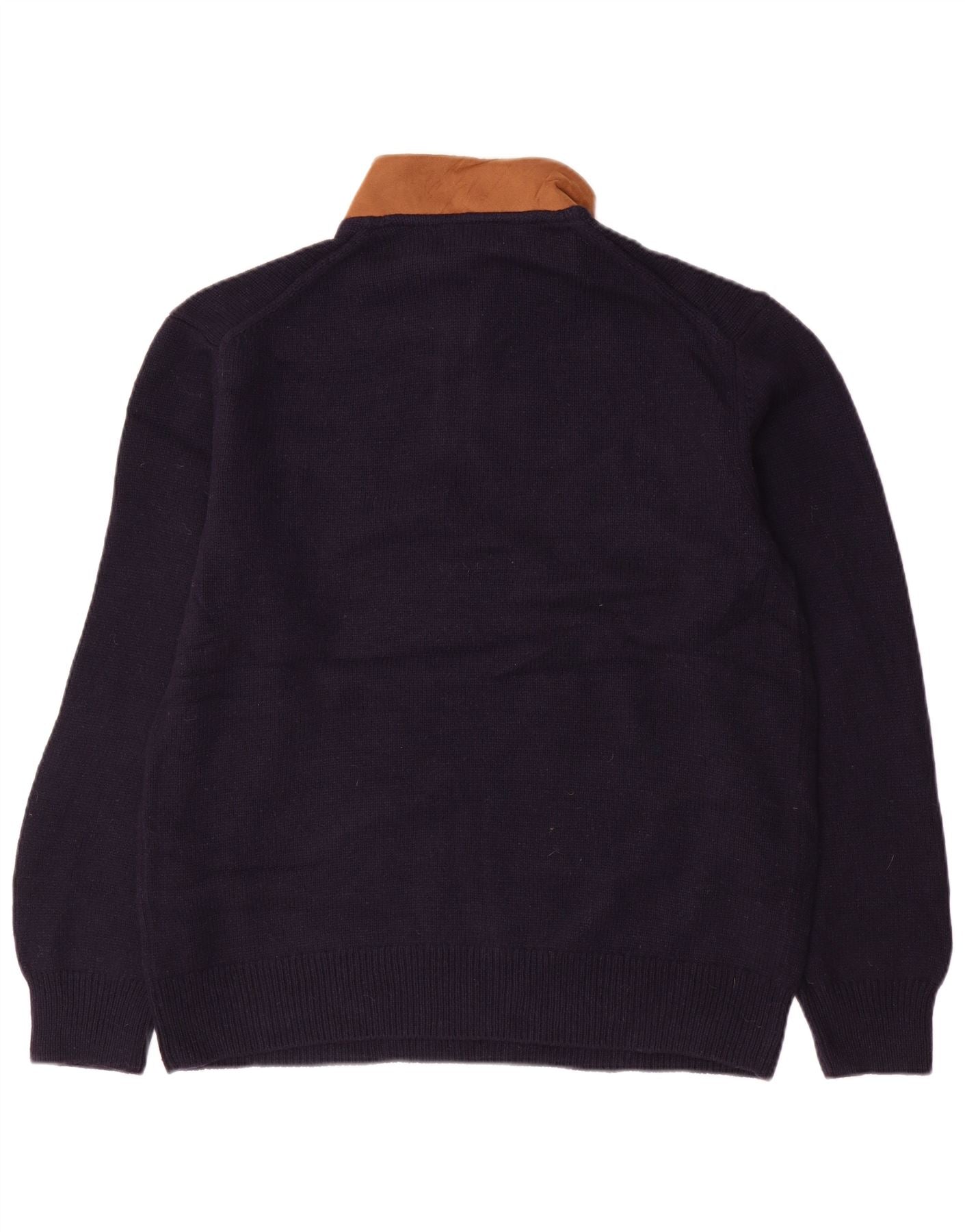 ORVIS Herren-Pullover mit Reißverschluss am Hals, groß, marineblaue Farbblock-Lammwolle