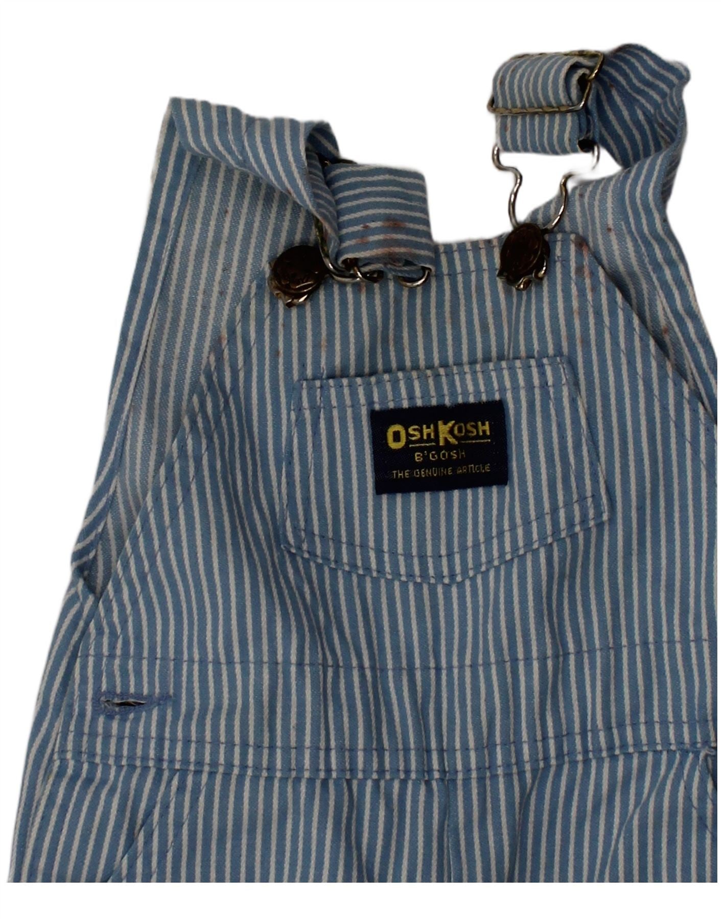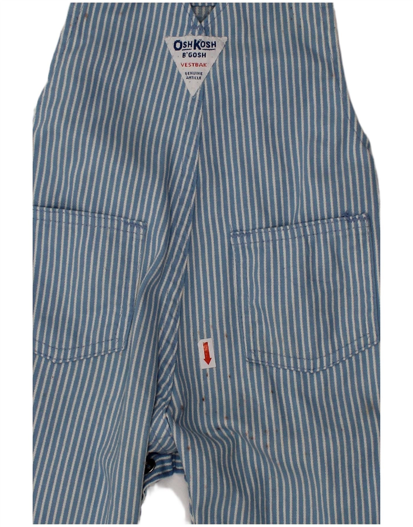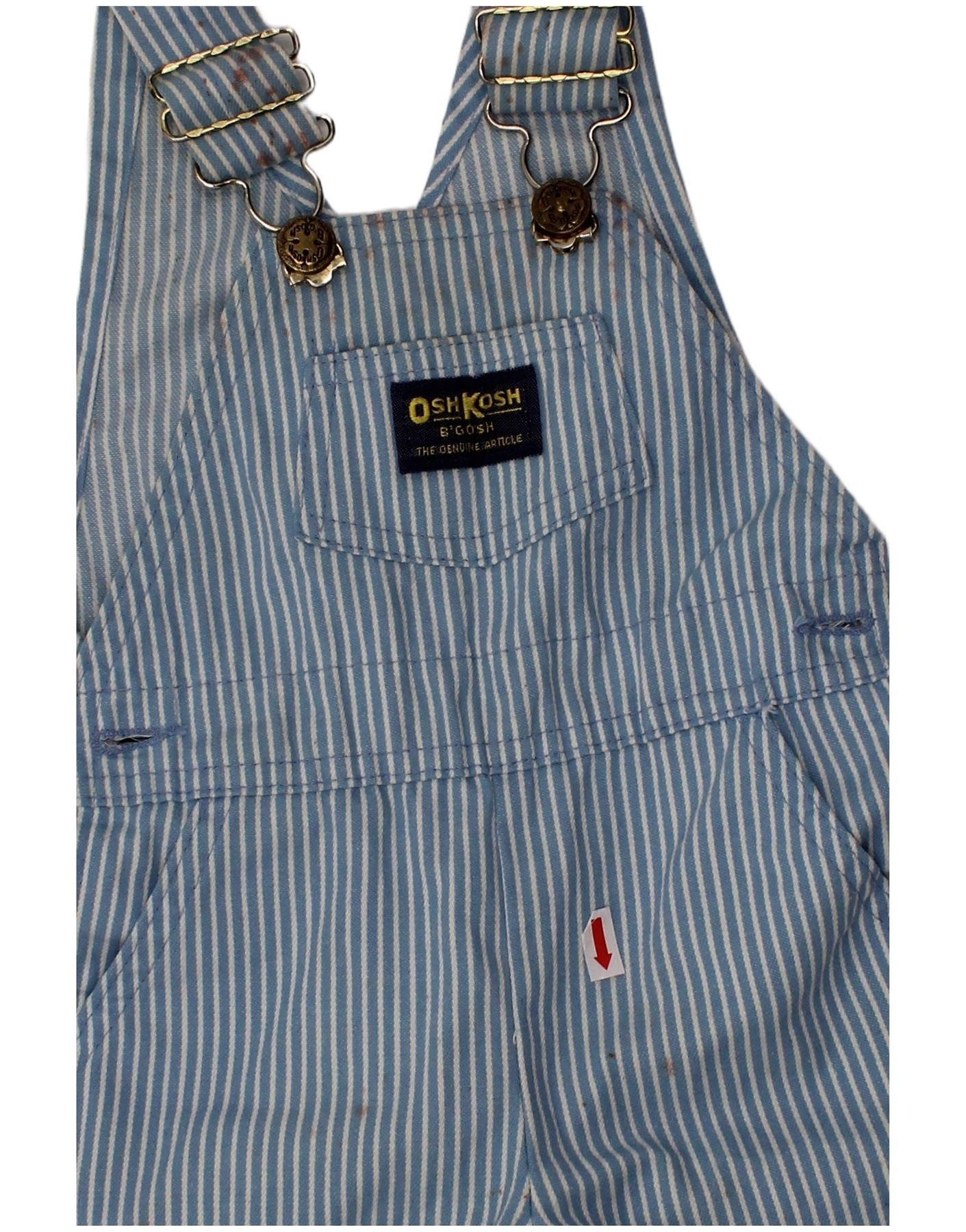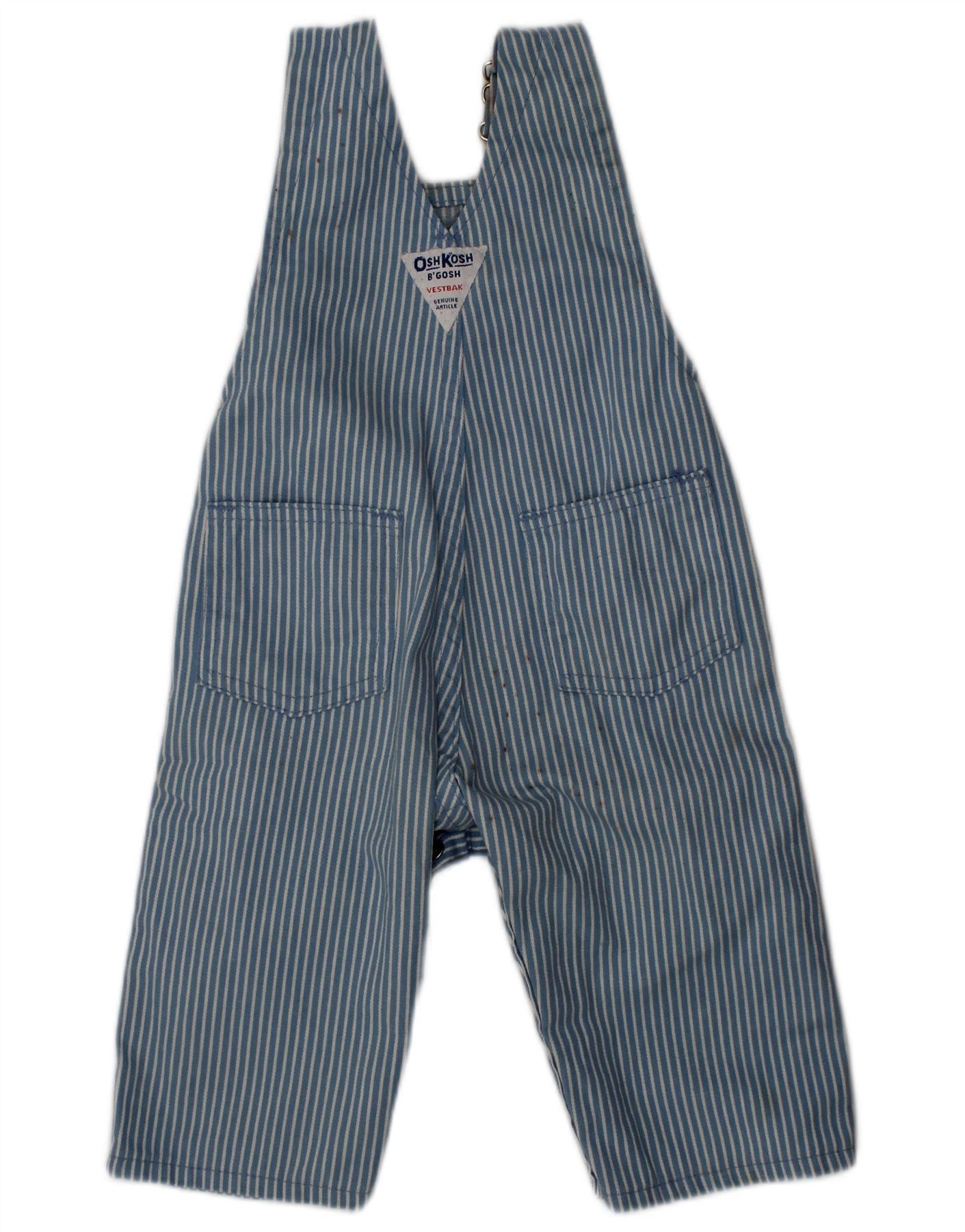 - AI Description: This Osh Kosh baby boys playsuit is crafted from durable blue denim. It features a classic vest style with adjustable buckle straps. Snap closures ensure easy changing. The design includes practical pockets and a subtle striped pattern. An embroidered logo adds a signature touch. The regular fit allows for comfortable movement.
