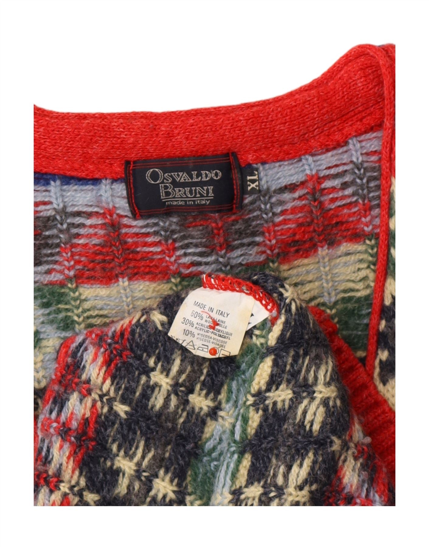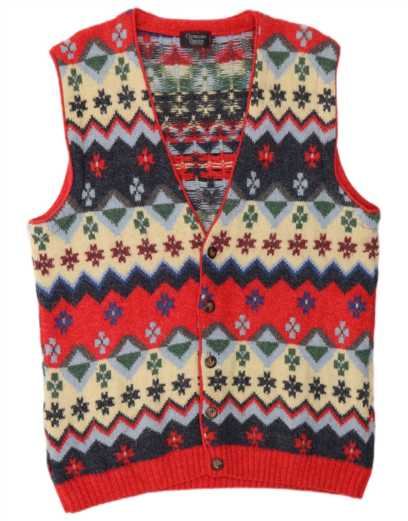OSVALDO BRUNI Ärmelloser Herren-Cardigan-Pullover XL Mehrfarbig Fair Isle