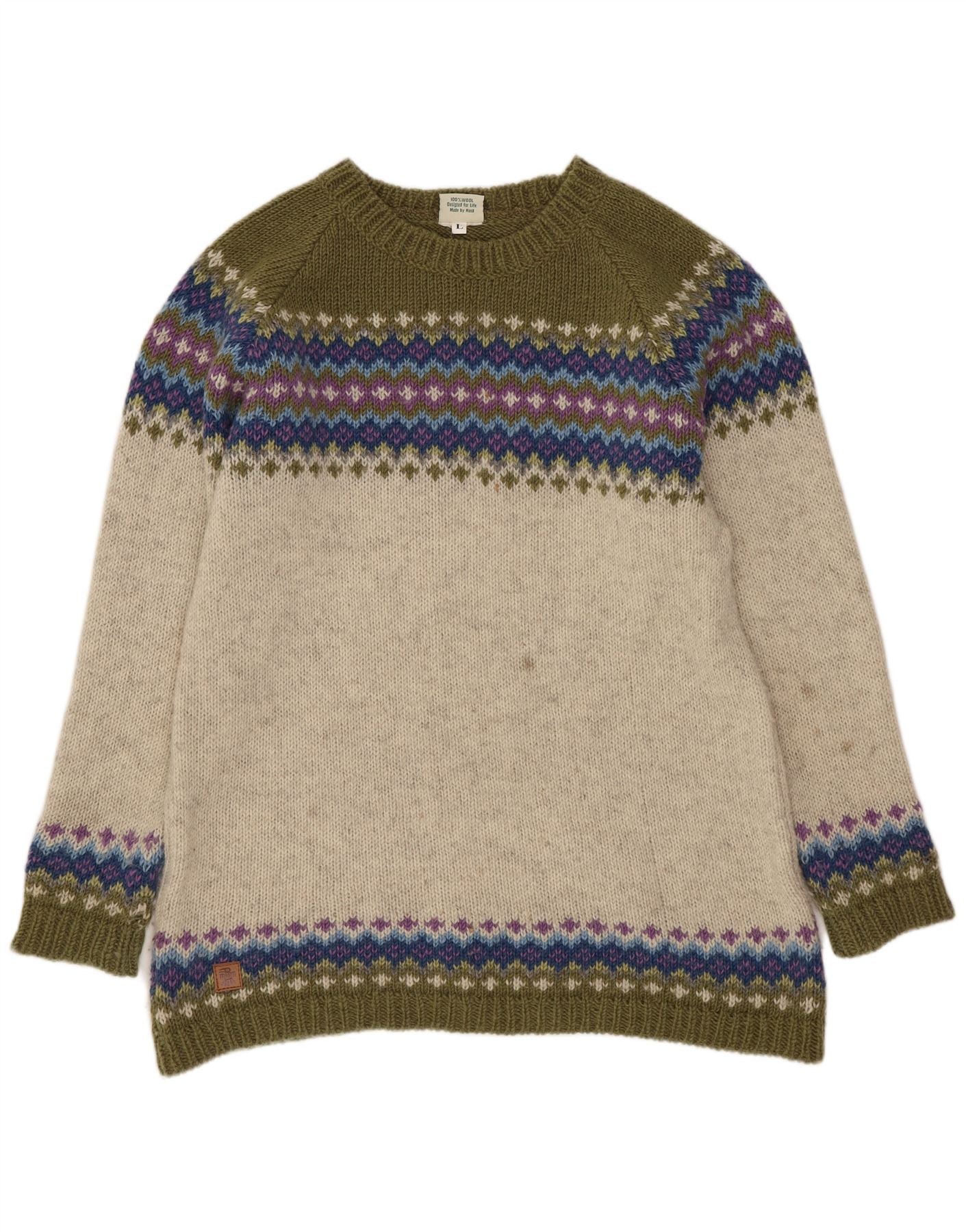 - KI-Beschreibung: Dieser Rundhalspullover für Damen von Pachamama besteht zu 100 Prozent aus Wolle und bietet eine warme, weiche Strickstruktur. Es verfügt über einen klassischen Rundhalsausschnitt und lange Ärmel. Das Pullover-Design sorgt für einfaches Tragen. Ein markantes Fair-Isle-Muster in mehrfarbigen Farbtönen ziert die Passe und die Manschetten und sorgt für ein traditionelles, geometrisches Detail. Die reguläre Passform sorgt für angenehmen Tragekomfort und macht es zu einer zeitlosen Ergänzung Ihrer Garderobe.