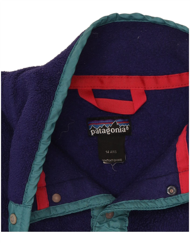 PATAGONIA Girls Button Neck Fleece Jumper 13-14 Years Purple Polyester