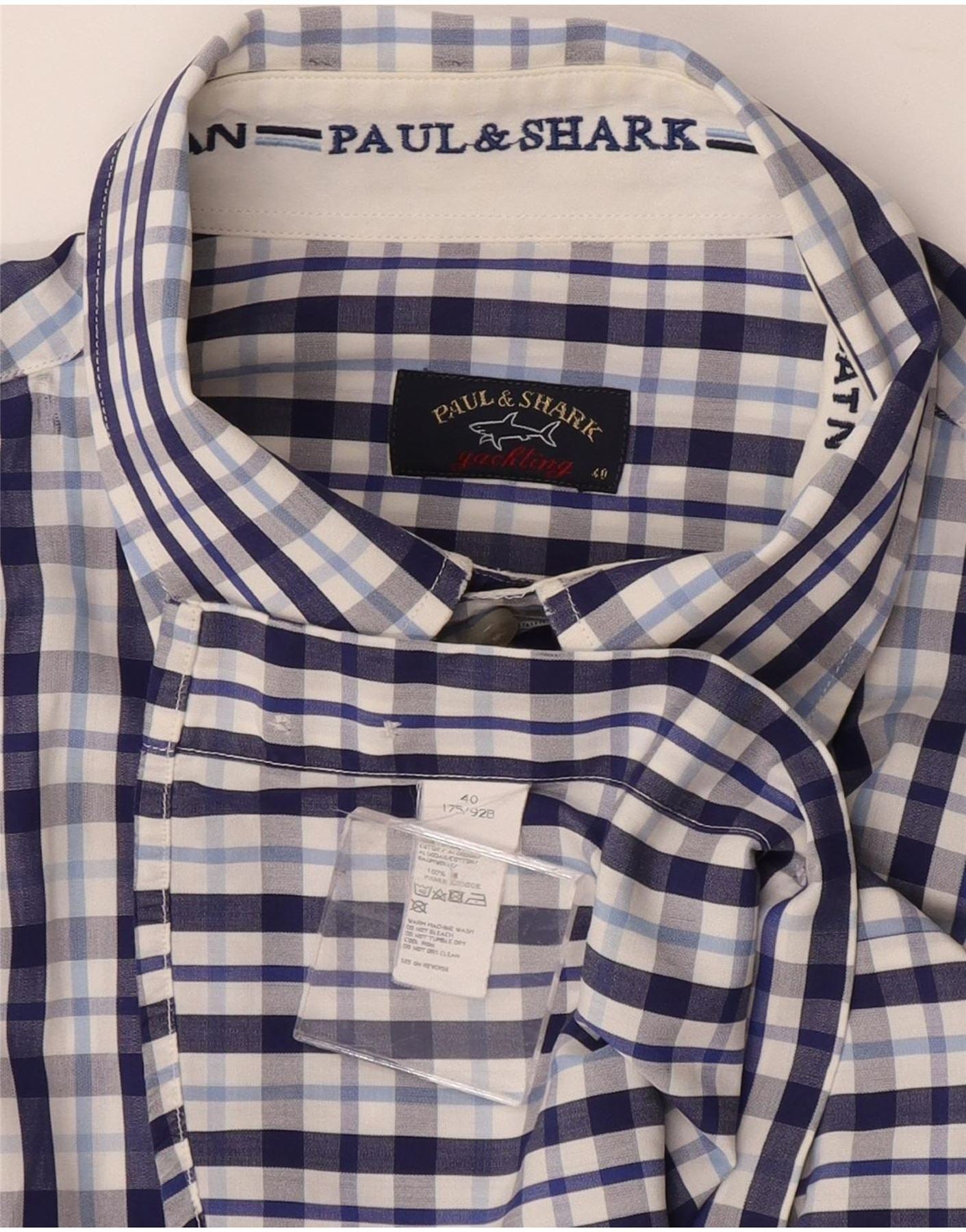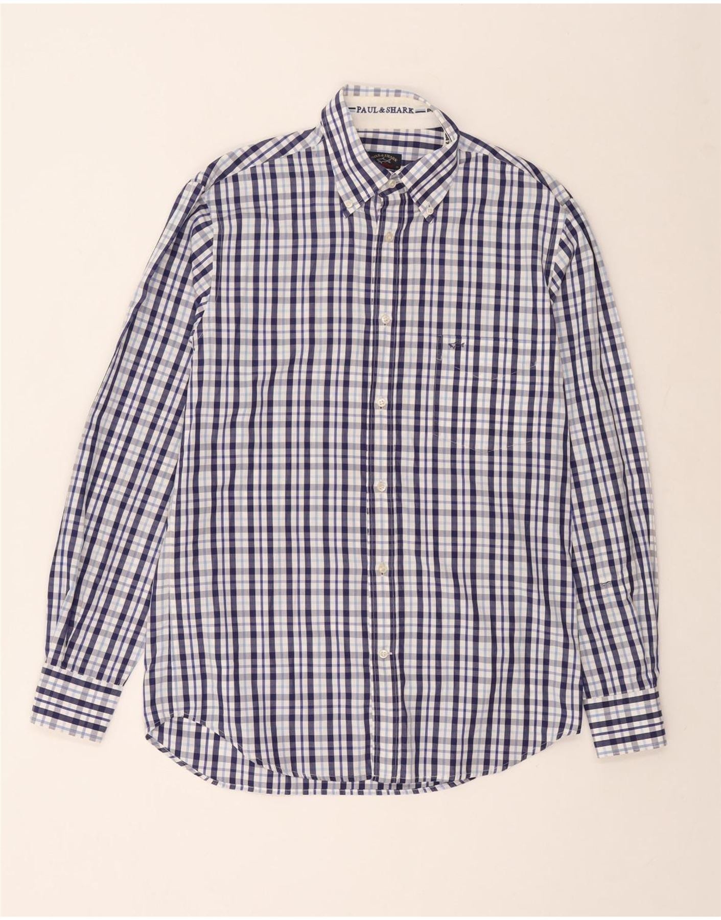 - KI-Beschreibung: Dieses Herrenhemd von Paul & Shark ist aus gewebter Baumwolle mit blauem Karomuster gefertigt. Der Kragenausschnitt und der Knopfverschluss verleihen ihm einen eleganten, nautischen Stil. Lange Ärmel mit Bündchen am Saum und eine normale Passform bieten klassischen Komfort. Es verfügt über praktische Taschen und ein zeitloses Karodesign für vielseitigen Tragekomfort.