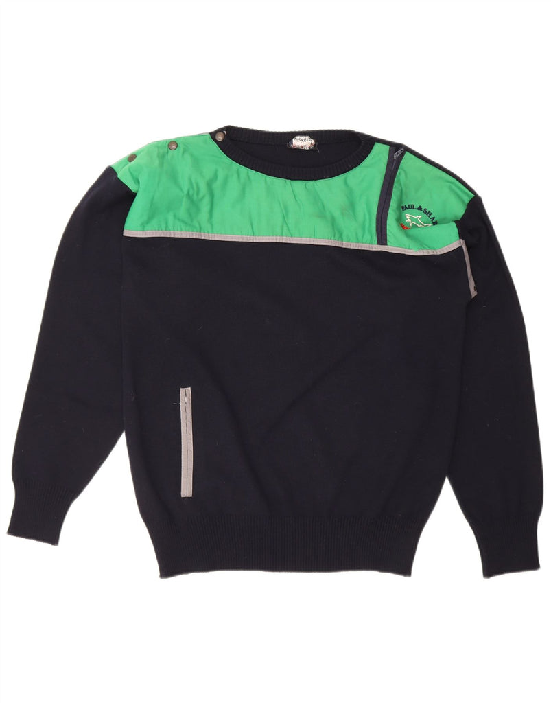 PAUL & SHARK Mens Crew Neck Jumper Sweater Large Navy Blue Colourblock