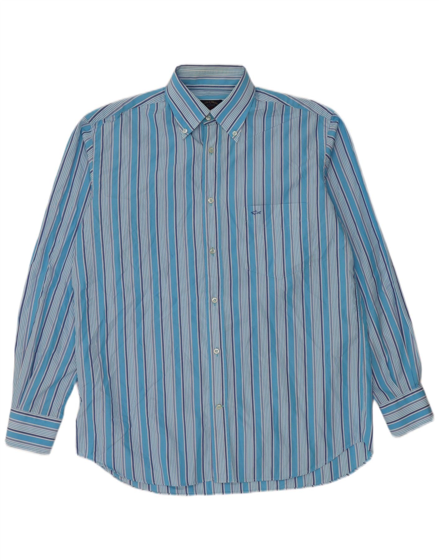 Paul & Shark Herrenhemd Größe 40 mittelblau gestreift aus Baumwolle