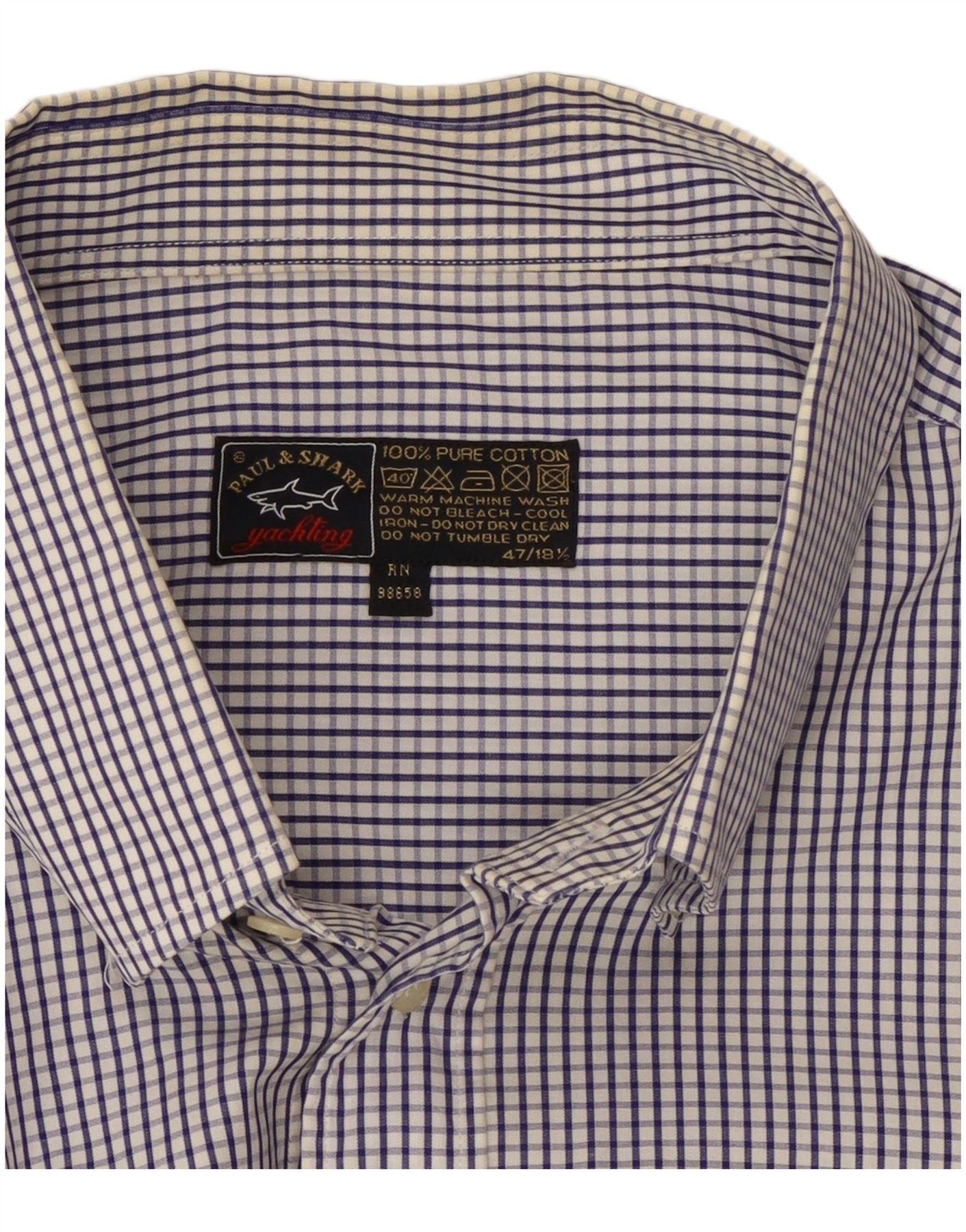 Paul & Shark Herren-Yachting-Hemd, Größe 47 18 1/2 2XL, marineblau karierte Baumwolle