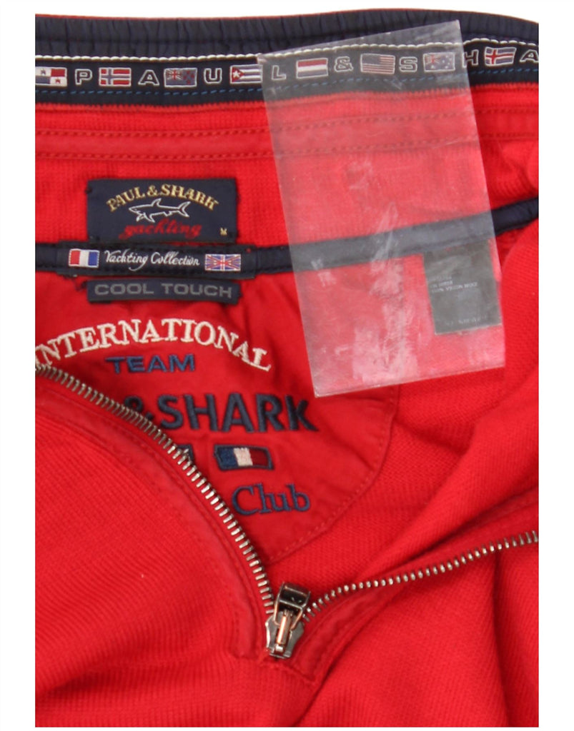 PAUL & SHARK Mens Yachting Zip Neck Jumper Sweater Medium Red Virgin Wool