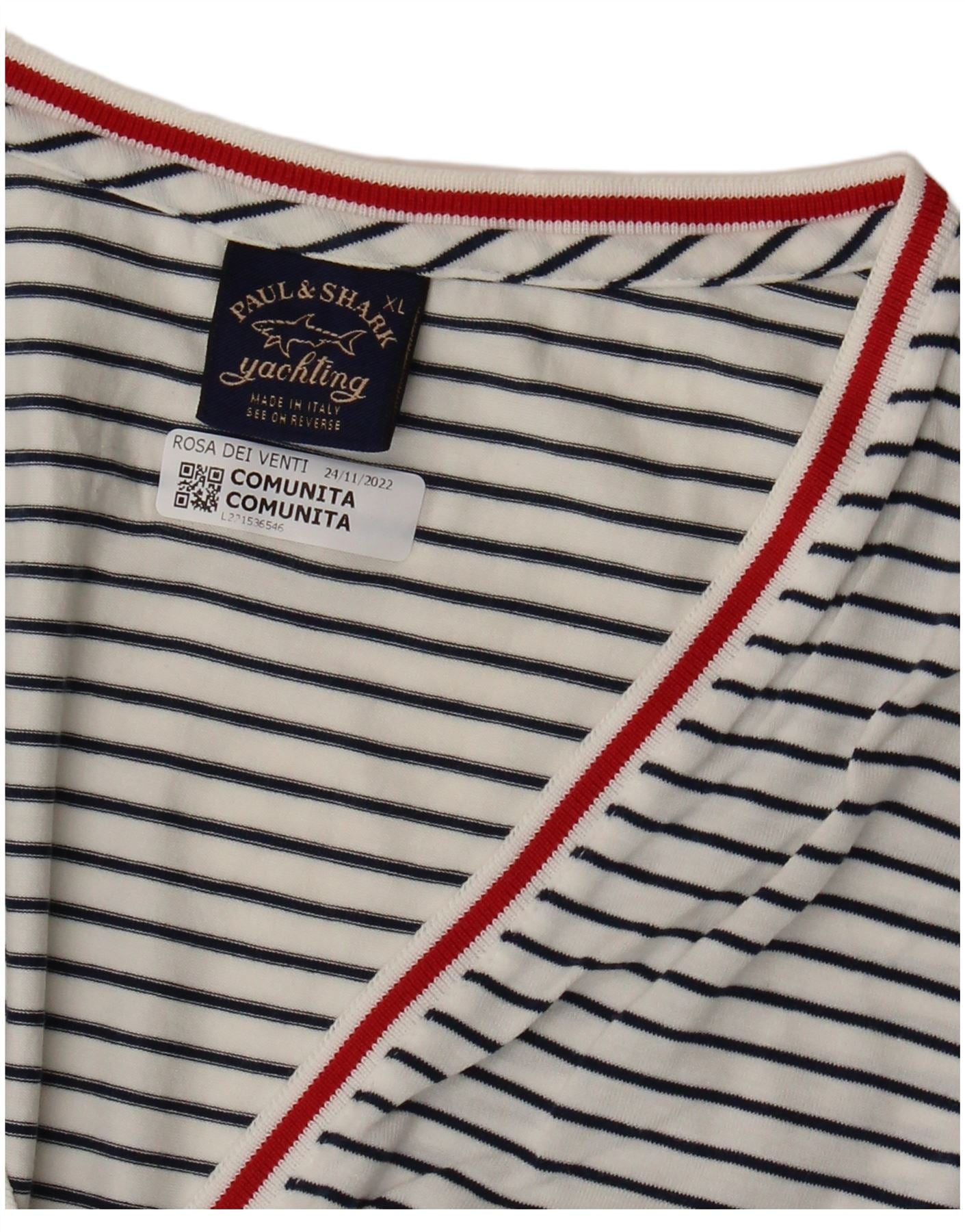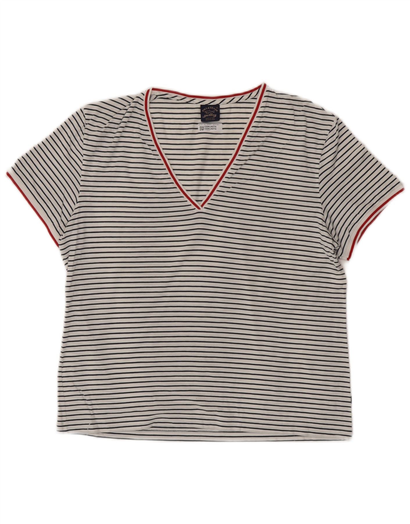 PAUL & SHARK Damen T-Shirt Top UK 18 XL weiß gestreift aus Baumwolle