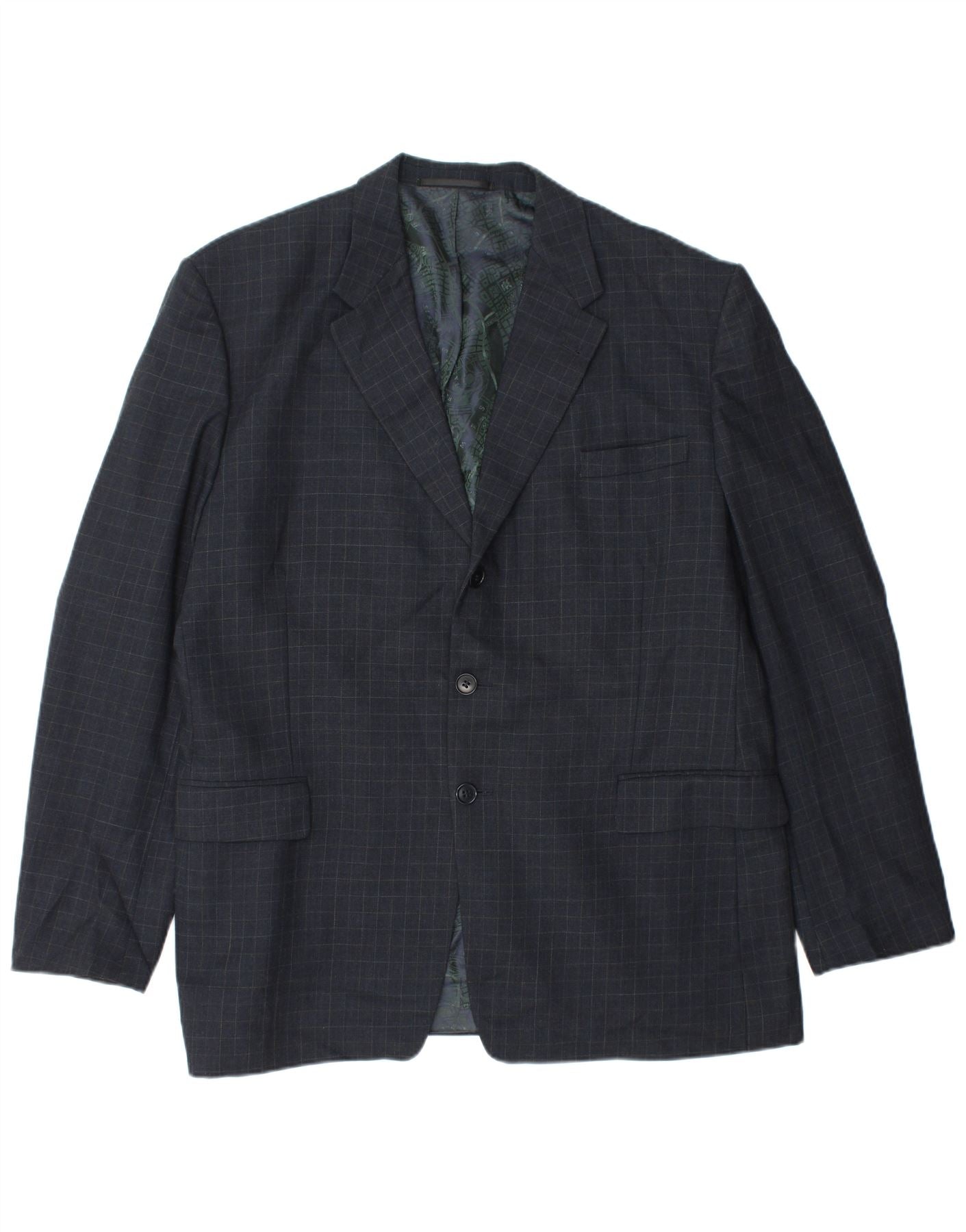 Paul Smith Herren-Blazer mit 3 Knöpfen, UK 40, große marineblaue Gingham-Wolle