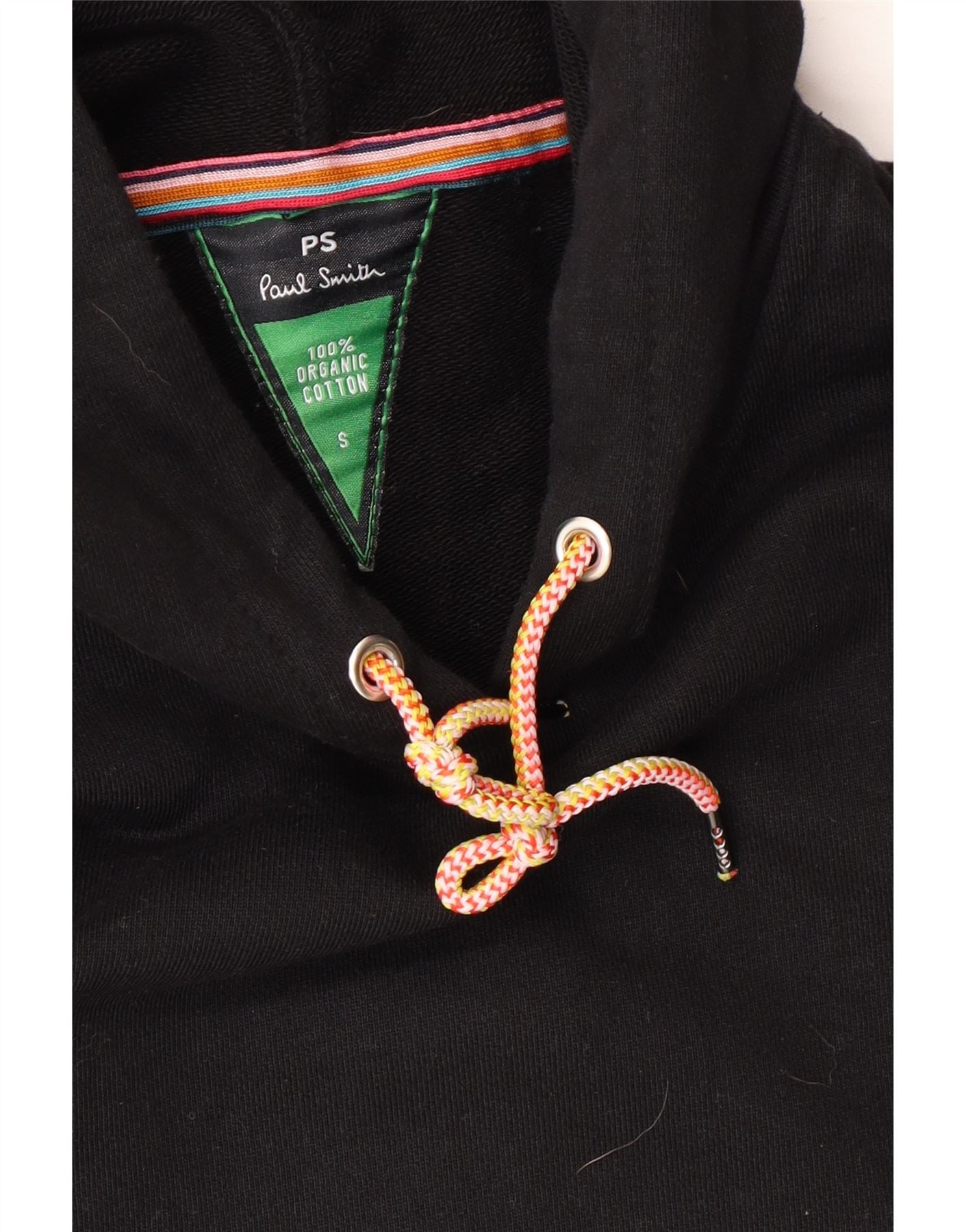 - AI Description: This Paul Smith mens hoodie jumper is crafted from soft black organic cotton jersey. It features a classic pullover design with a comfortable regular fit. The hooded neckline and long sleeves provide warmth and a relaxed silhouette. Practical pockets add functionality, while a subtle logo detail offers a signature touch. This modern piece combines comfort with understated style.
