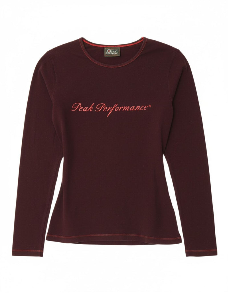 PEAK PERFORMANCE Womens Top Long Sleeve UK 14 Large Maroon Cotton
