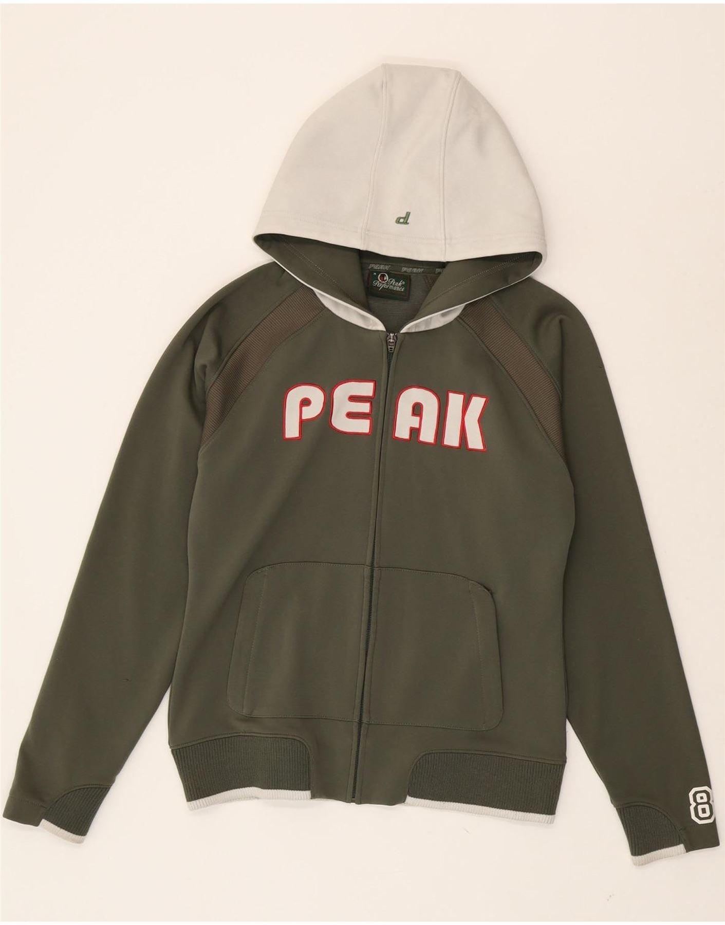 PEAK PERFORMANCE Womens Zip Hoodie Sweater UK 12 Medium Green Colourblock