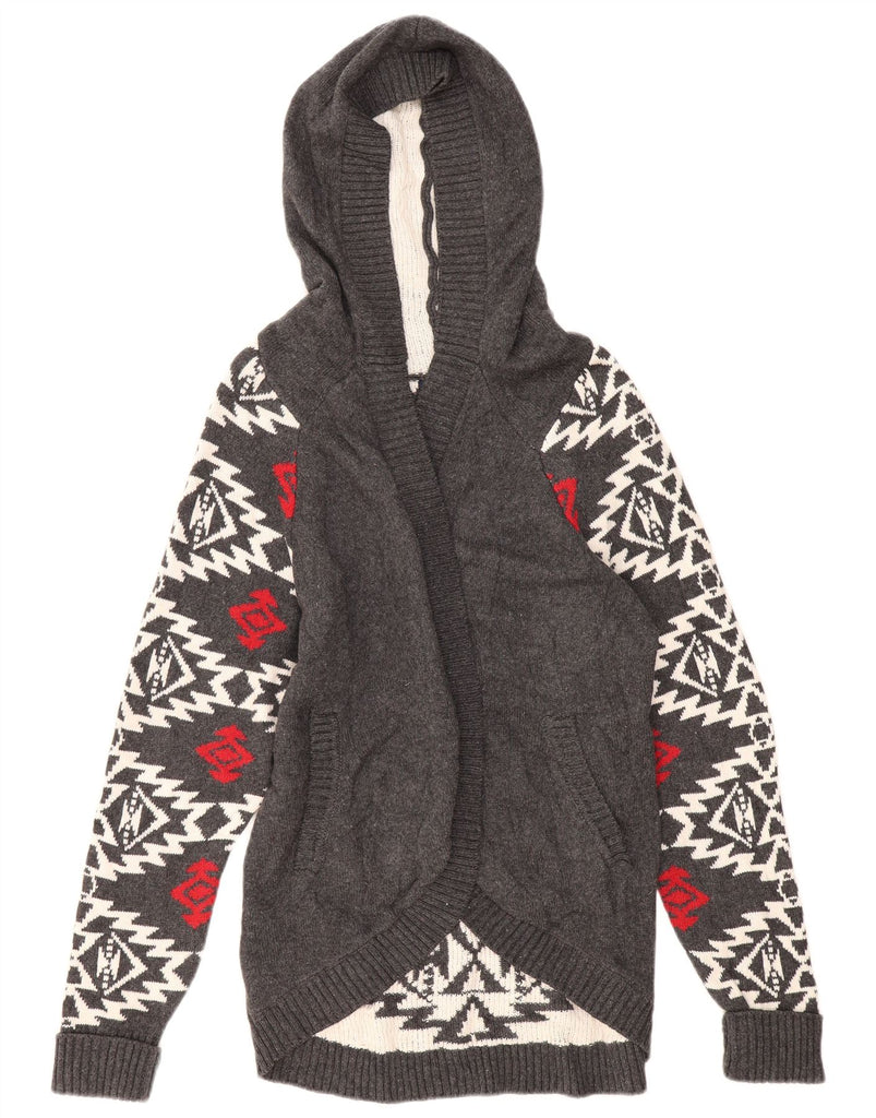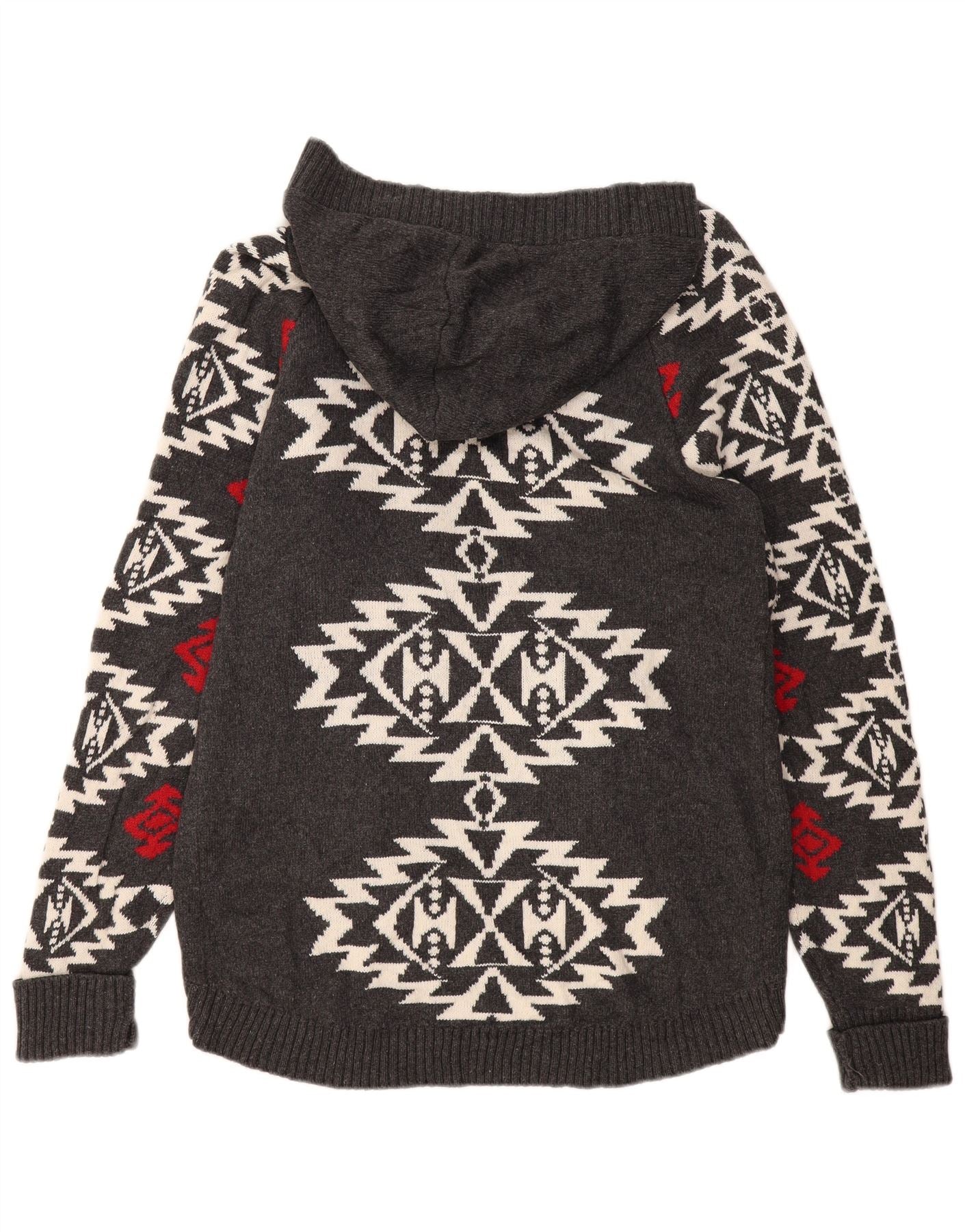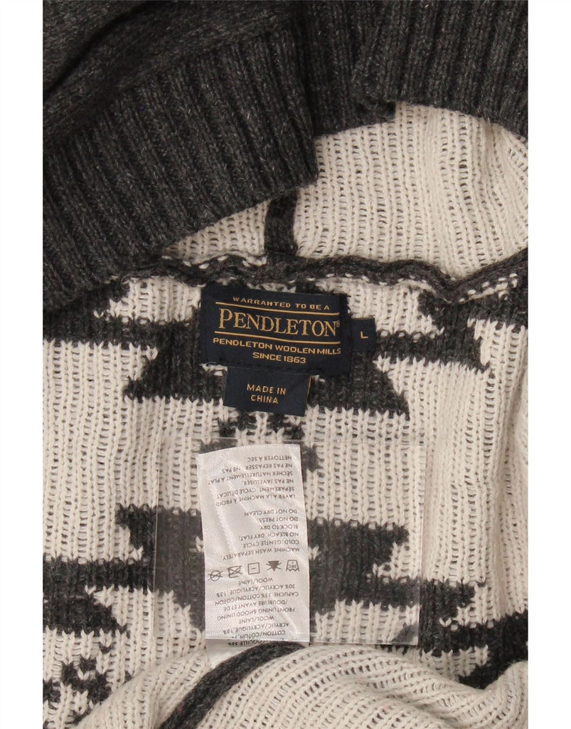 PENDLETON Womens Hooded Cardigan Sweater UK 16 Large Grey Fair Isle Cotton