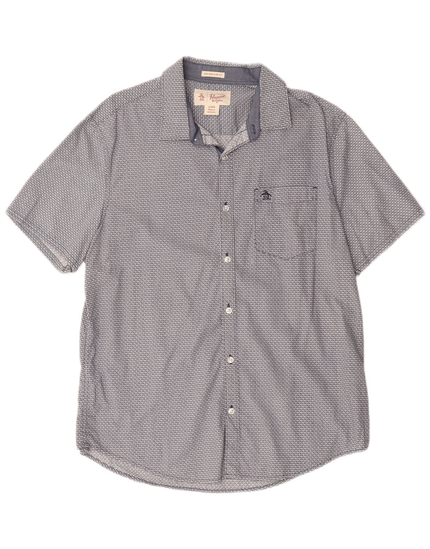 PENGUIN Herren Heritage Slim Fit Kurzarmhemd, groß, blau, geometrisch