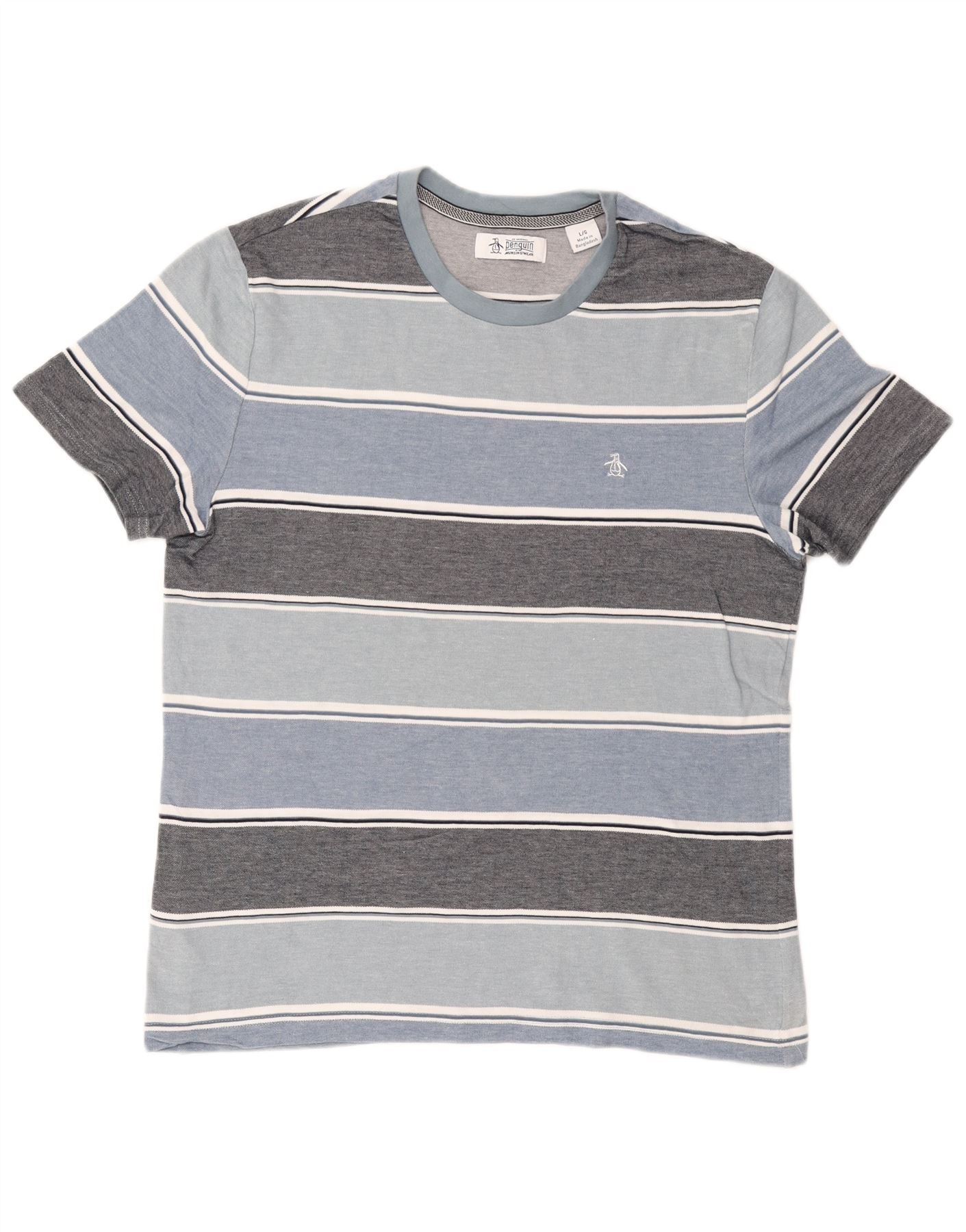 PINGUIN Herren-T-Shirt-Oberteil, groß, blau gestreift, Baumwolle