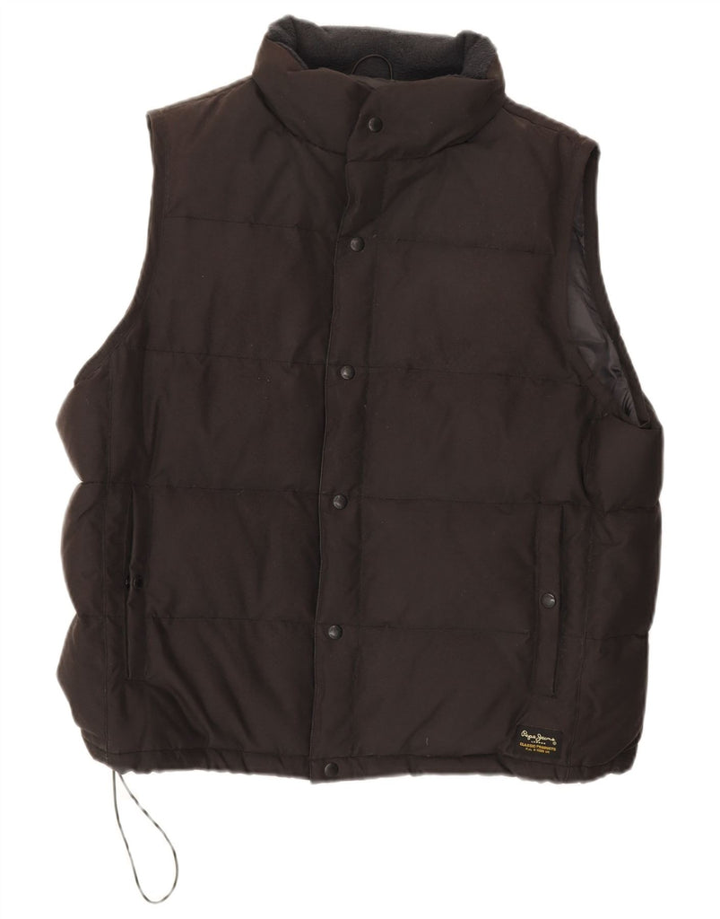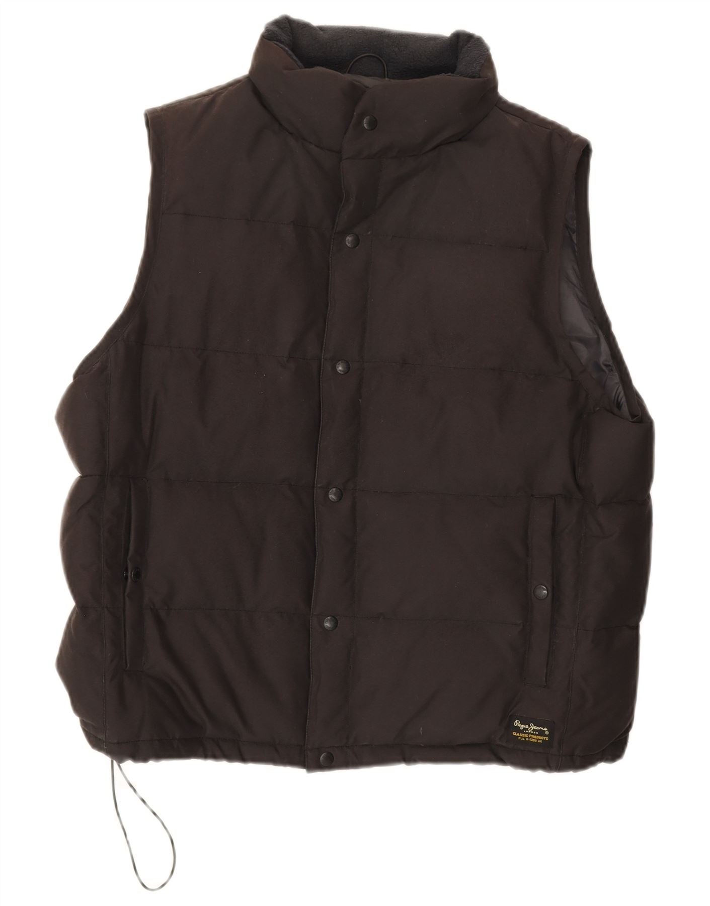 PEPE JEANS Mens Loose Fit Padded Gilet UK 36 Small Black Polyester