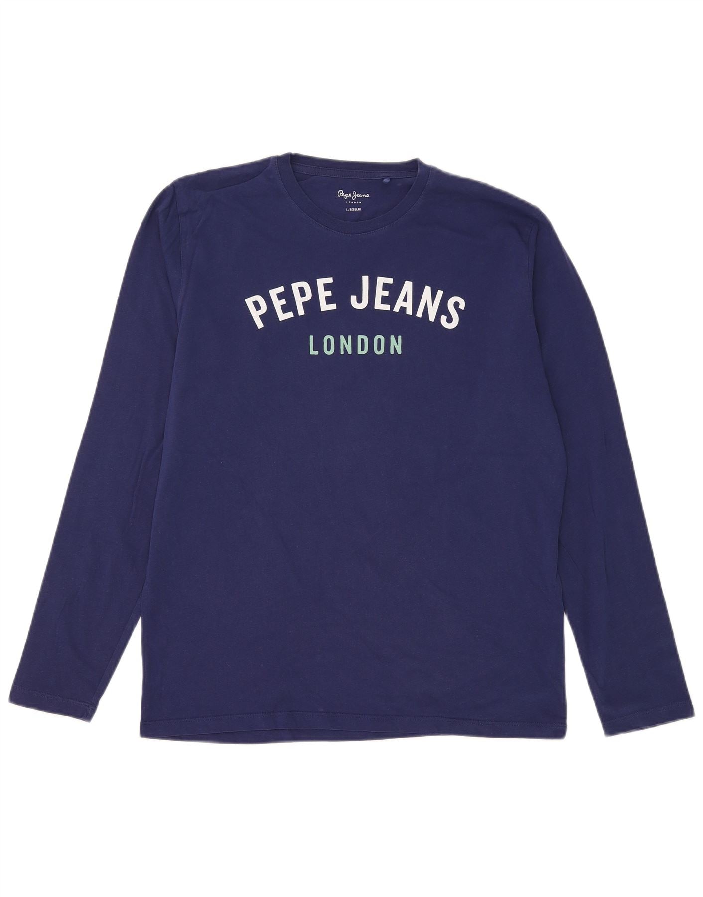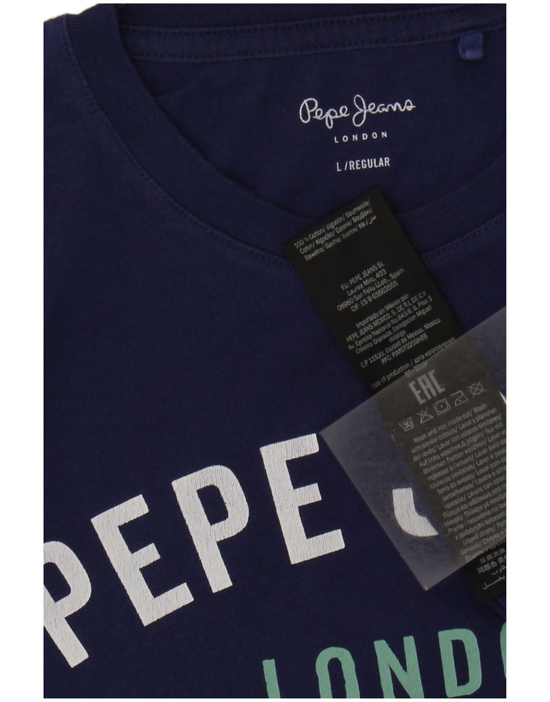 PEPE JEANS Mens Regular Fit Graphic Top Long Sleeve Large Navy Blue Cotton