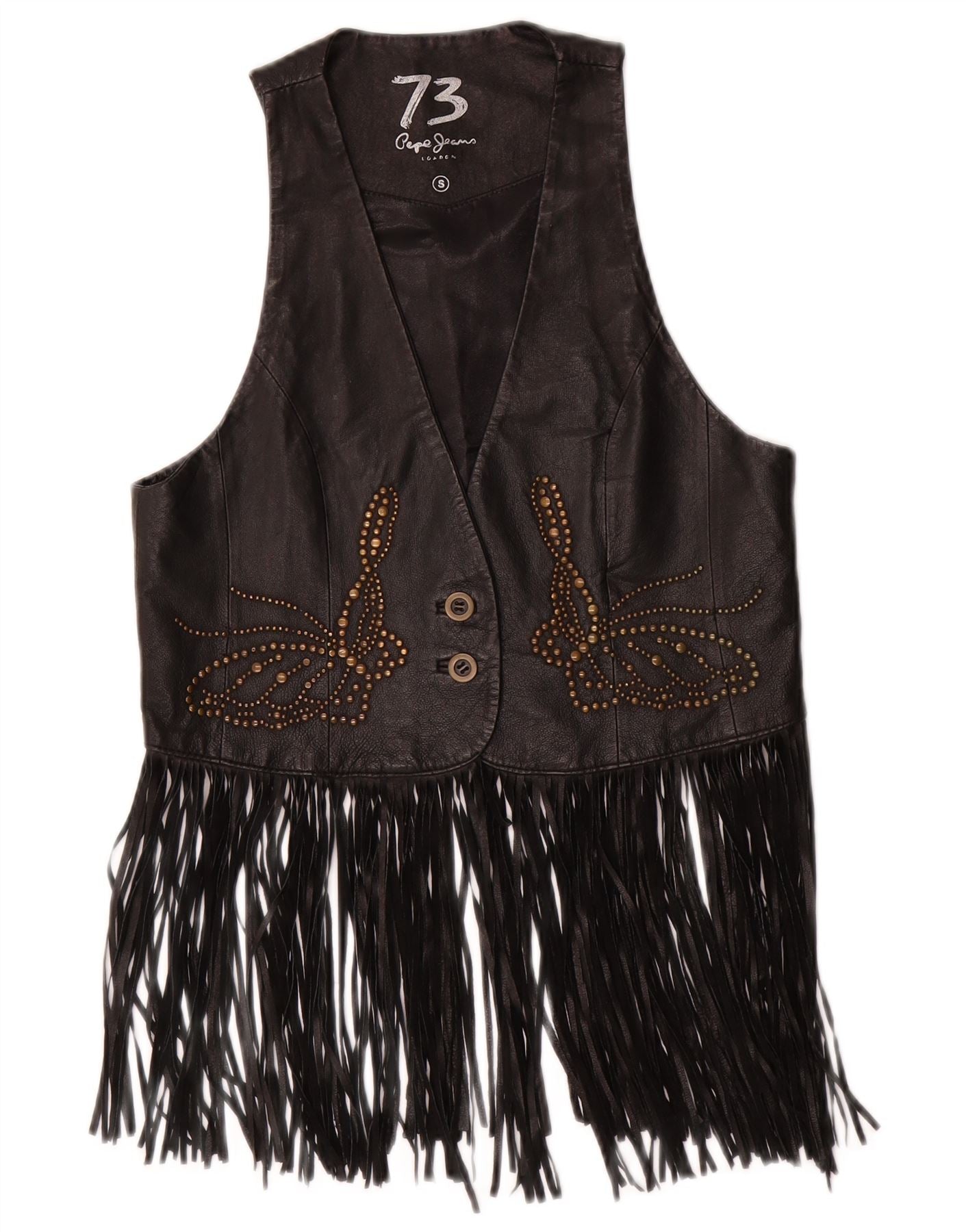 PEPE JEANS Damen Lederweste UK 10 Kleiner schwarzer Leder-Cowboy