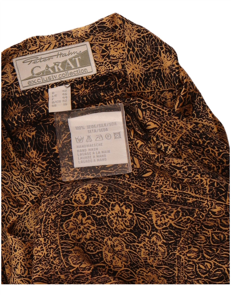 PETER HAHN Womens Longline Shirt UK 16 Large Gold Floral Silk