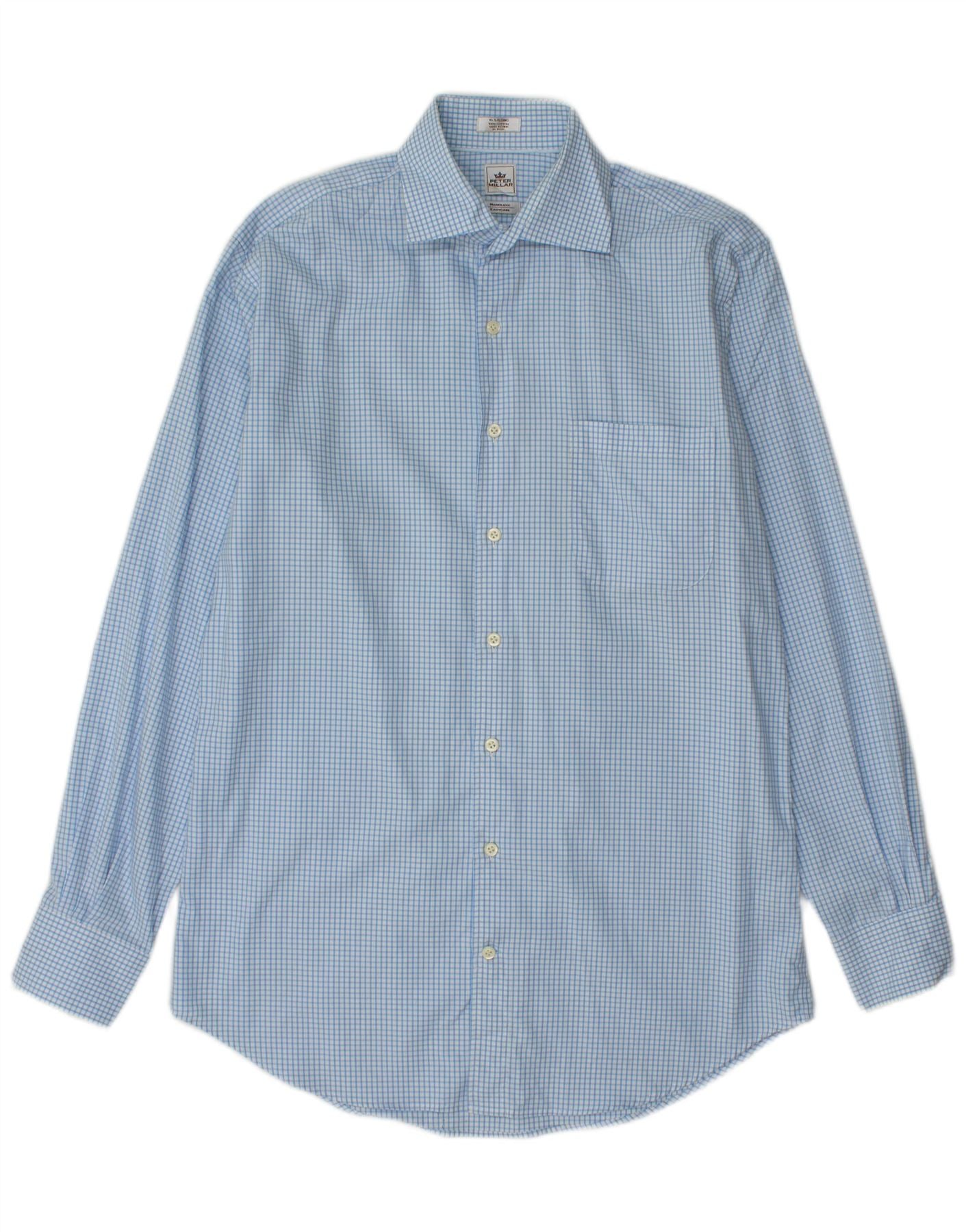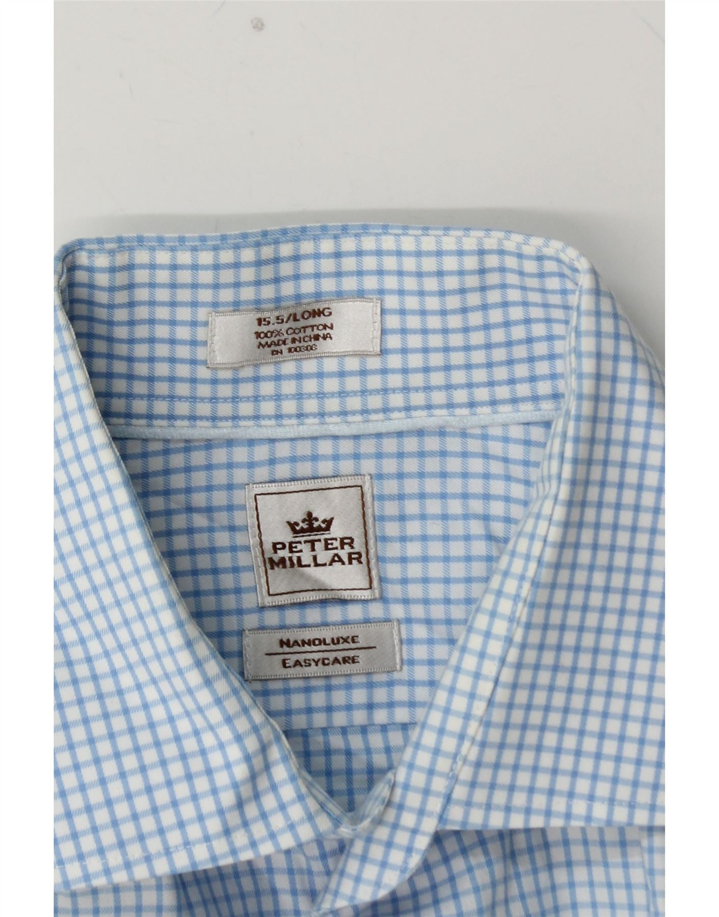 PETER MILLAR Herren-Langhemd, Größe 15 5, mittelblaue Gingham-Baumwolle