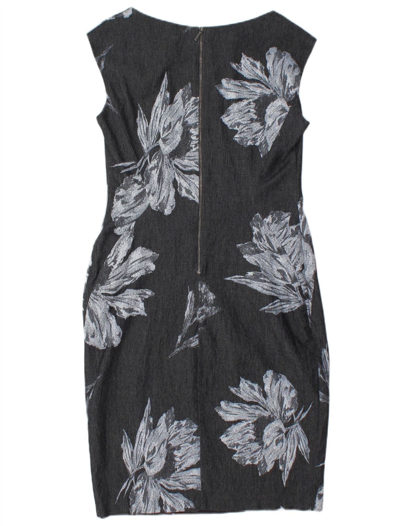 PHASE EIGHT Damen Ärmelloses Etuikleid UK 12 Mittelgraue geblümte Baumwolle