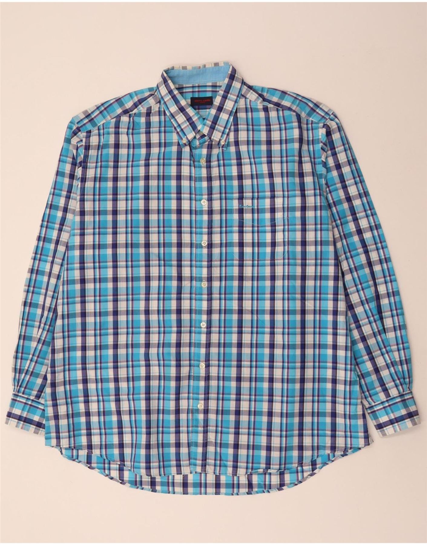 PIERRE CARDIN Herrenhemd Größe 47 2XL Blau kariert