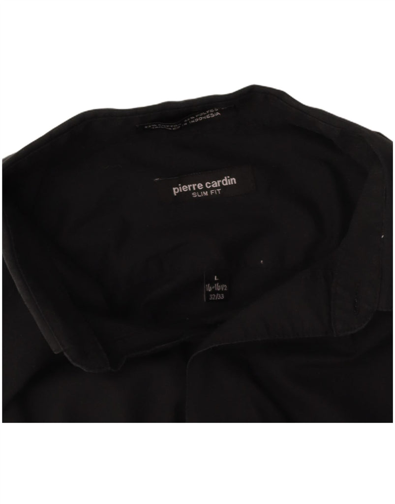 PIERRE CARDIN Mens Slim Fit Shirt Size 16 1/2 Large Black Cotton