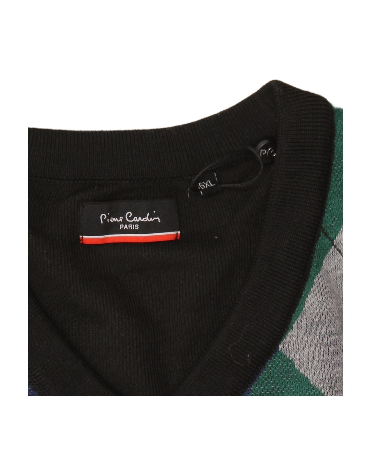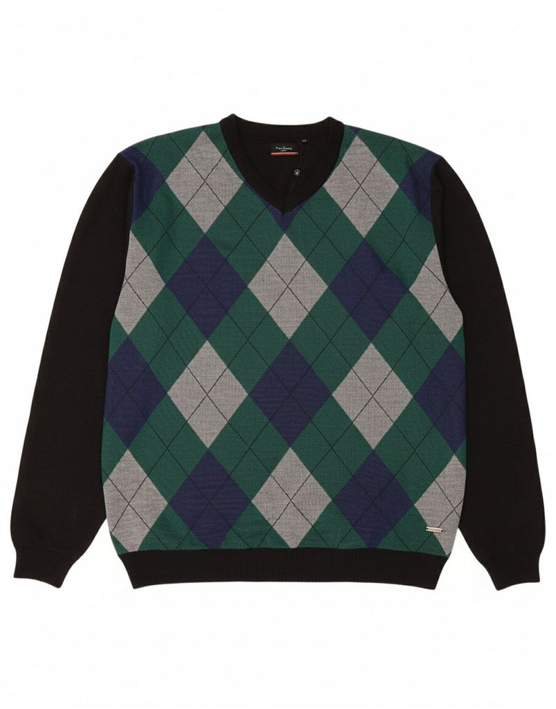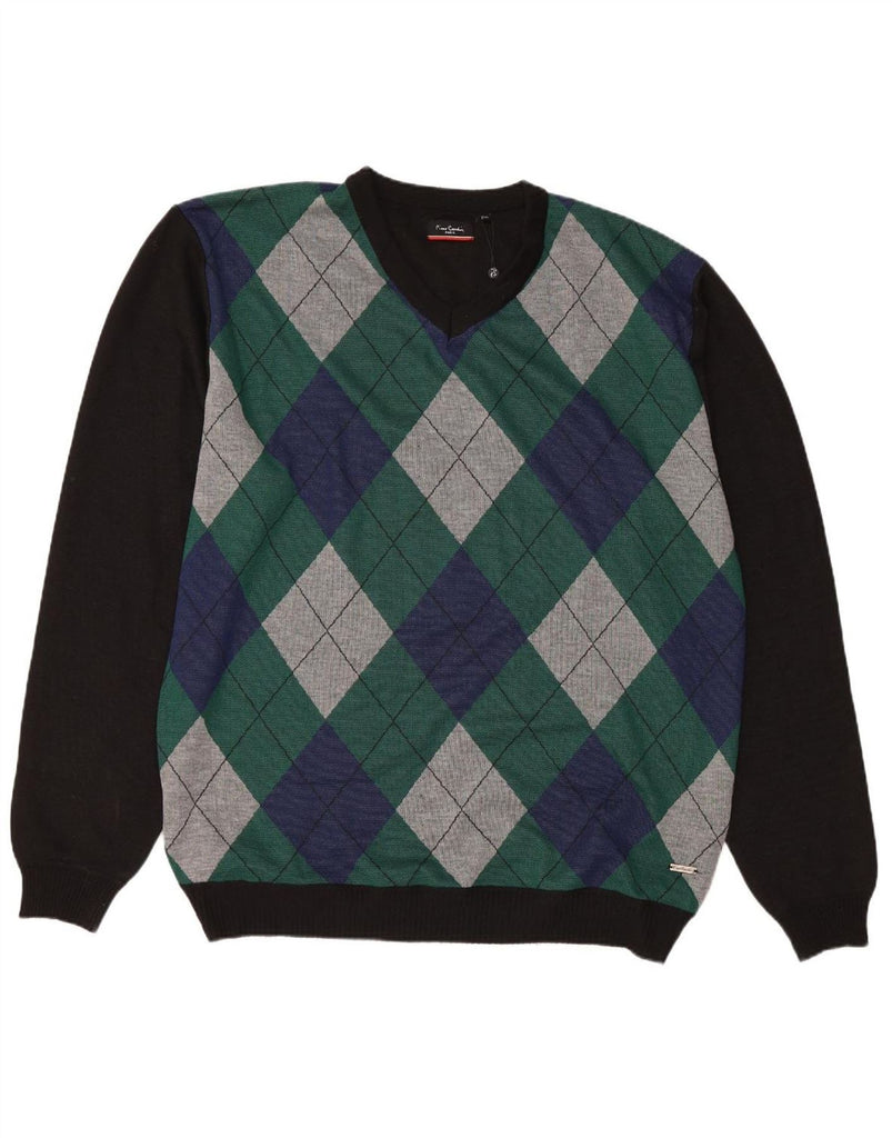 PIERRE CARDIN Mens V-Neck Jumper Sweater 5XL Black Argyle/Diamond