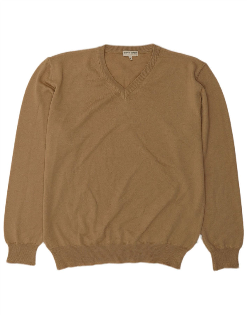 PIERRE CARDIN Mens V-Neck Jumper Sweater Medium Beige Polyacrylic