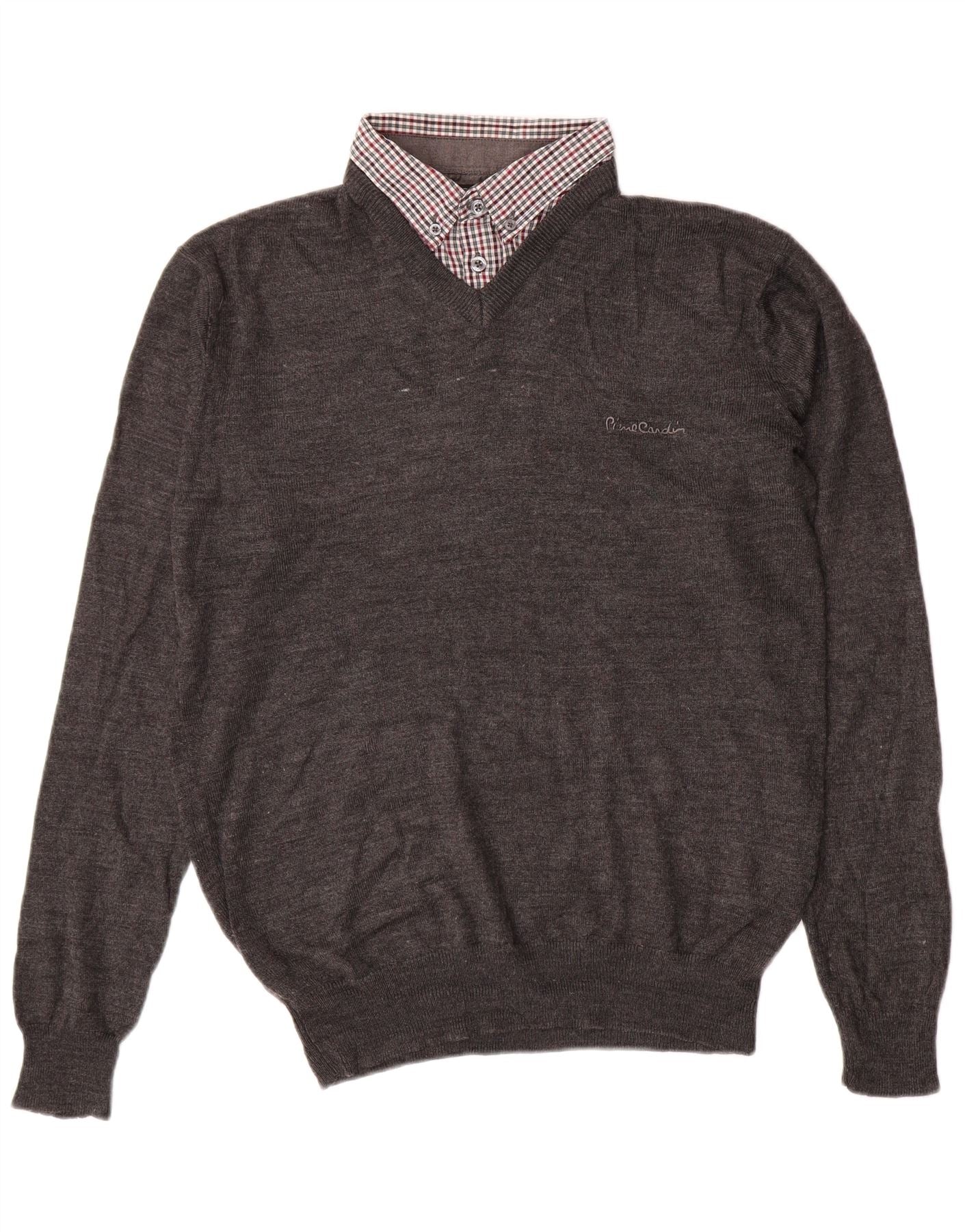 PIERRE CARDIN Herren-Pullover mit V-Ausschnitt, mittelgrau, Acryl, klassisch