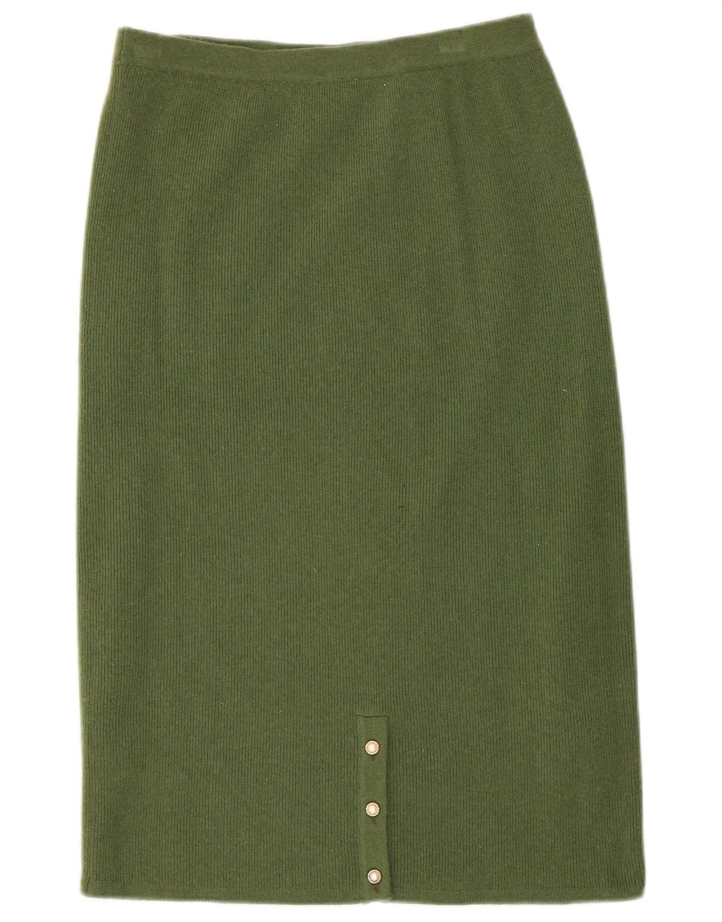 PIERRE CARDIN Womens Knit Skirt W28 Small Green Wool