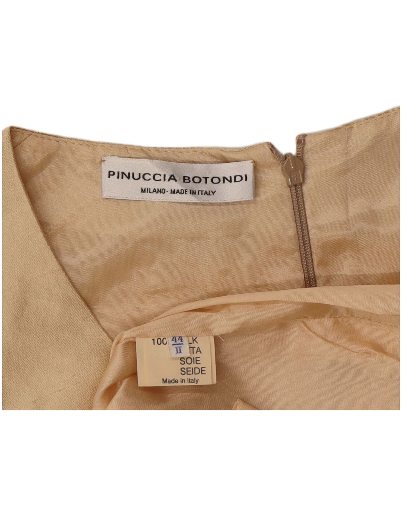 - AI Description: This Pinuccia Botondi womens sheath dress is crafted from luxurious 100 silk, offering a smooth, woven texture. It features a classic round neck and a sleek sleeveless design. The regular fit silhouette is tailored for elegance. A concealed zip closure ensures a seamless finish. Its solid beige colour exudes timeless sophistication.