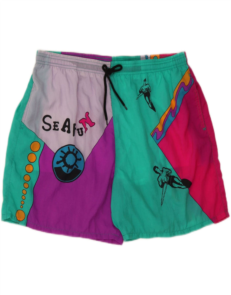 PLAYCREW Herren-Badeshorts mit Grafik, groß, mehrfarbig, Farbblock