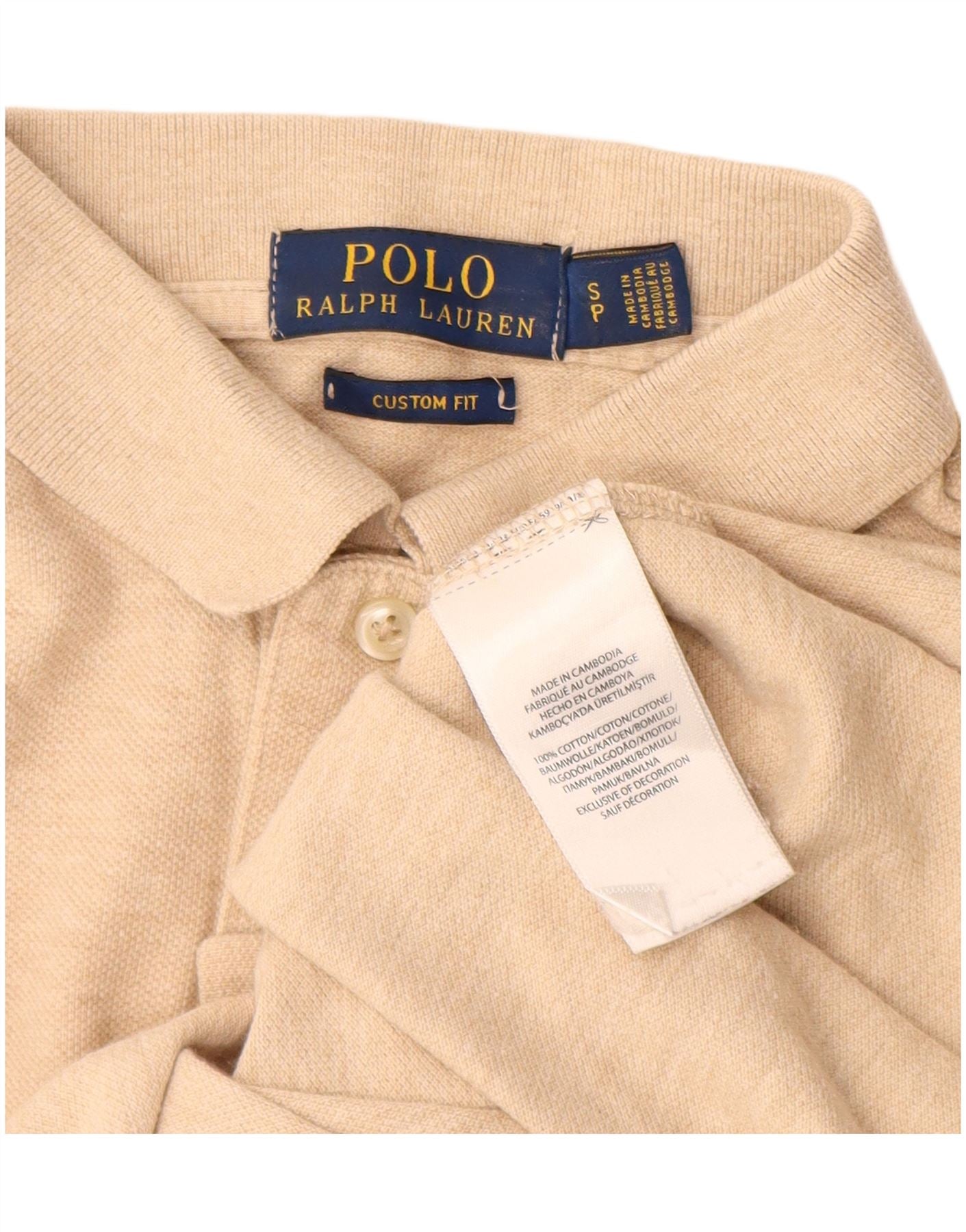 POLO RALPH LAUREN Herren-Poloshirt mit individueller Passform, Größe S, Beige, Baumwolle