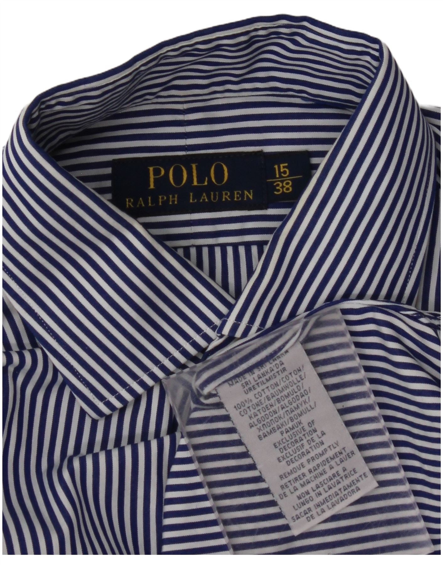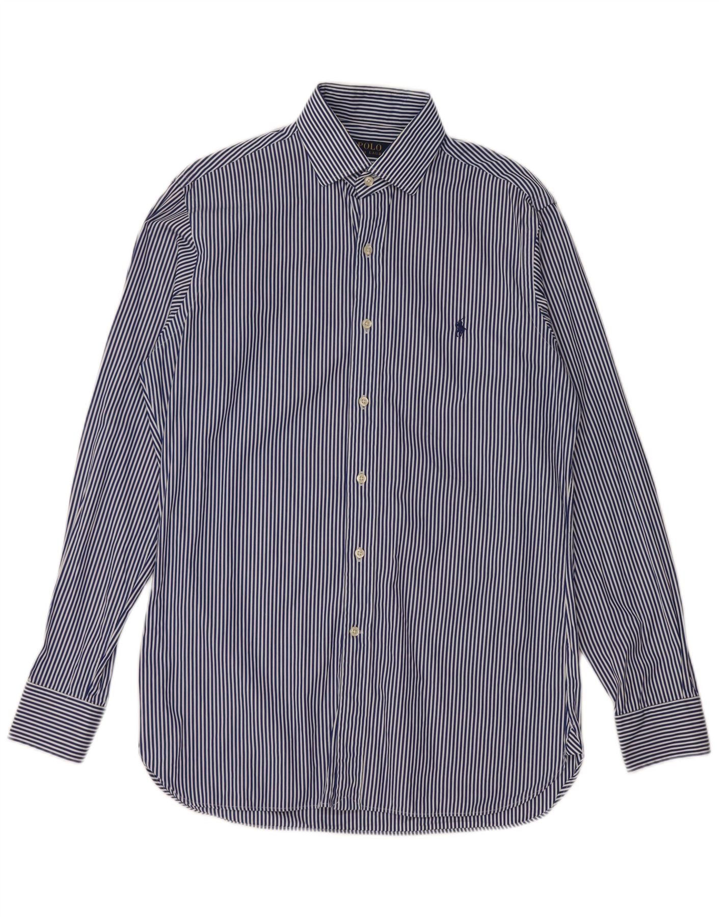 POLO RALPH LAUREN Herrenhemd Größe 15 38 Mittelblaue Nadelstreifen-Baumwolle