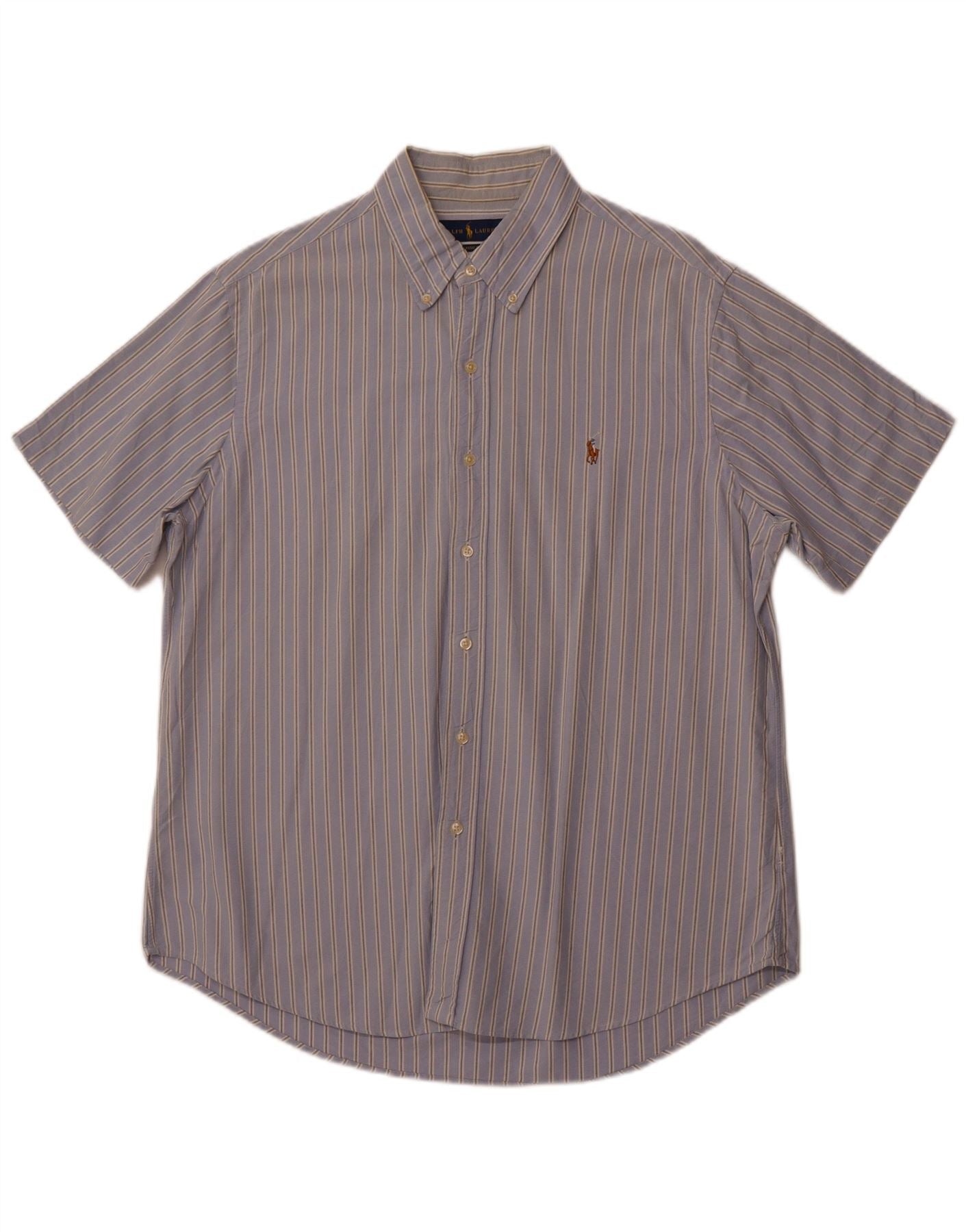 POLO RALPH LAUREN Herren Kurzarmhemd mit klassischer Passform, groß, blau gestreift