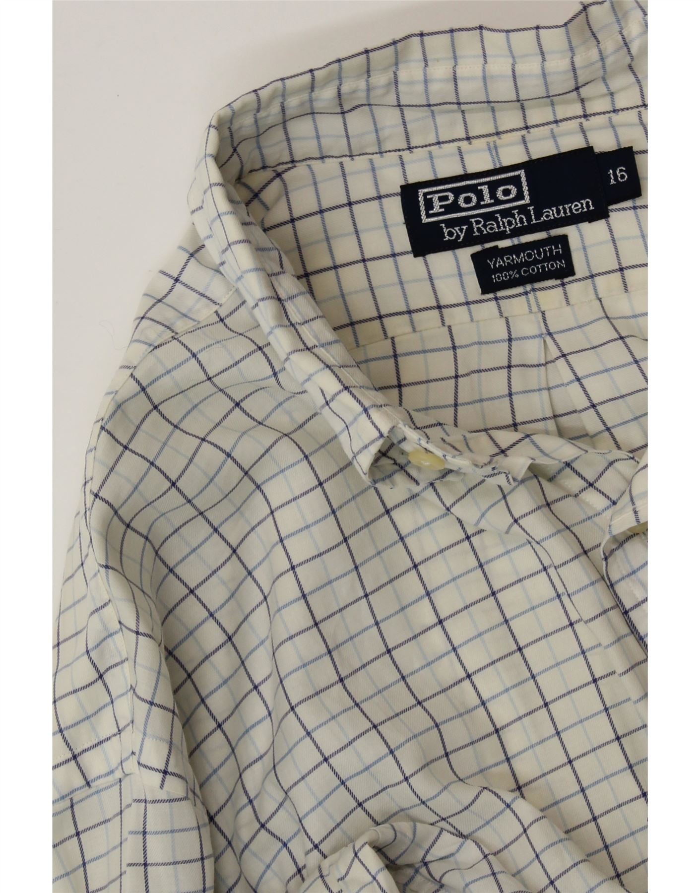 POLO RALPH LAUREN Herren-Yarmouth-Hemd, Größe 16, große, weiß karierte Baumwolle