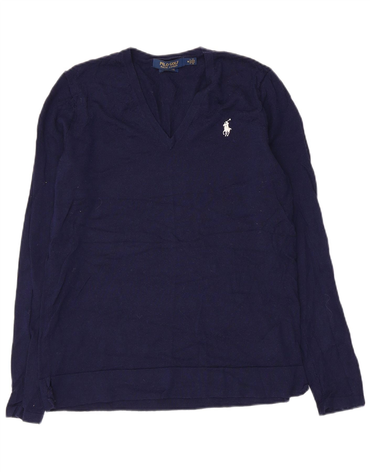 Polo Ralph Lauren Damen-Pullover mit V-Ausschnitt, UK 12, mittelmarineblaue Wolle