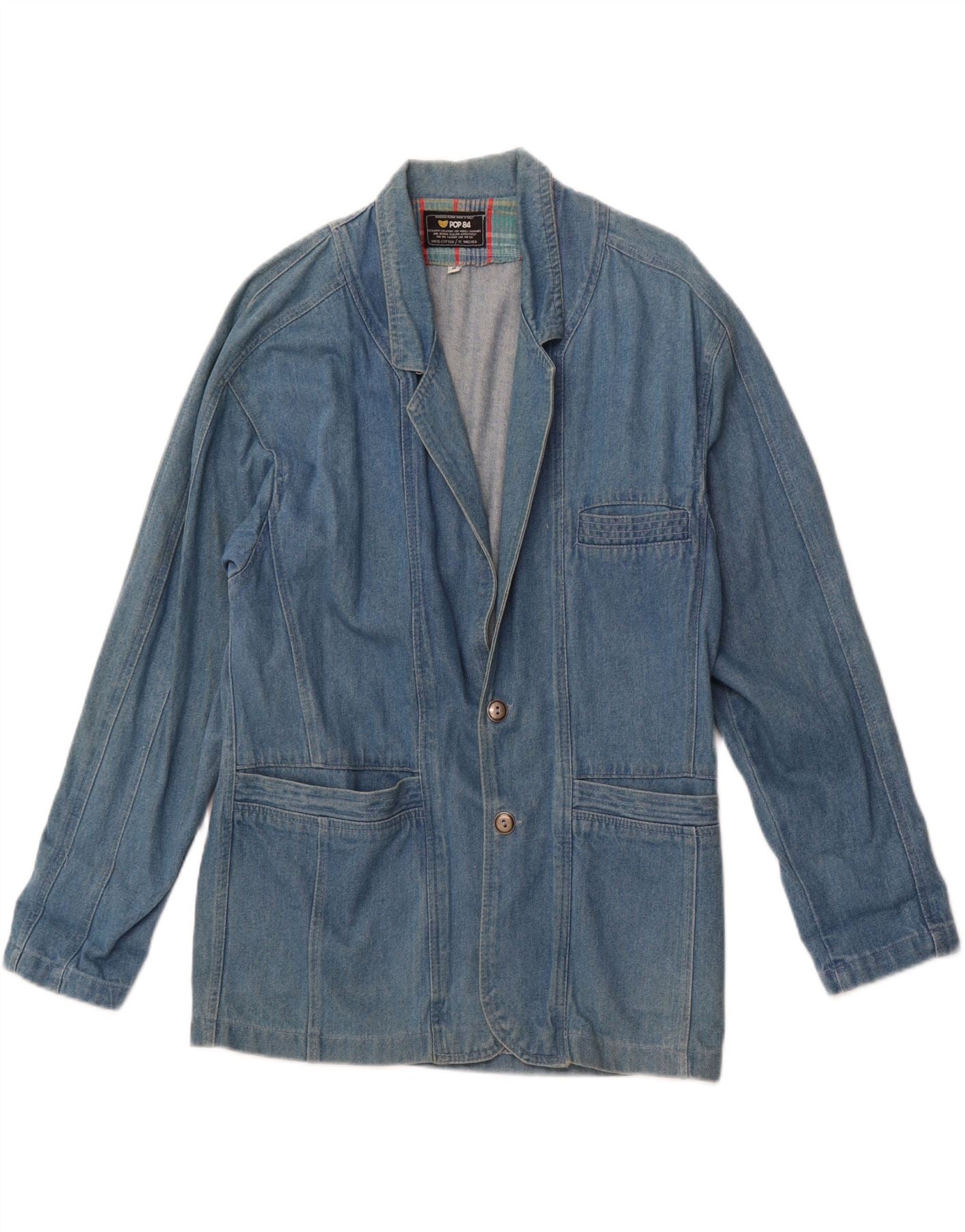POP 84 Herren-Jeansblazer mit 2 Knöpfen, UK 38, mittelblaue Baumwolle