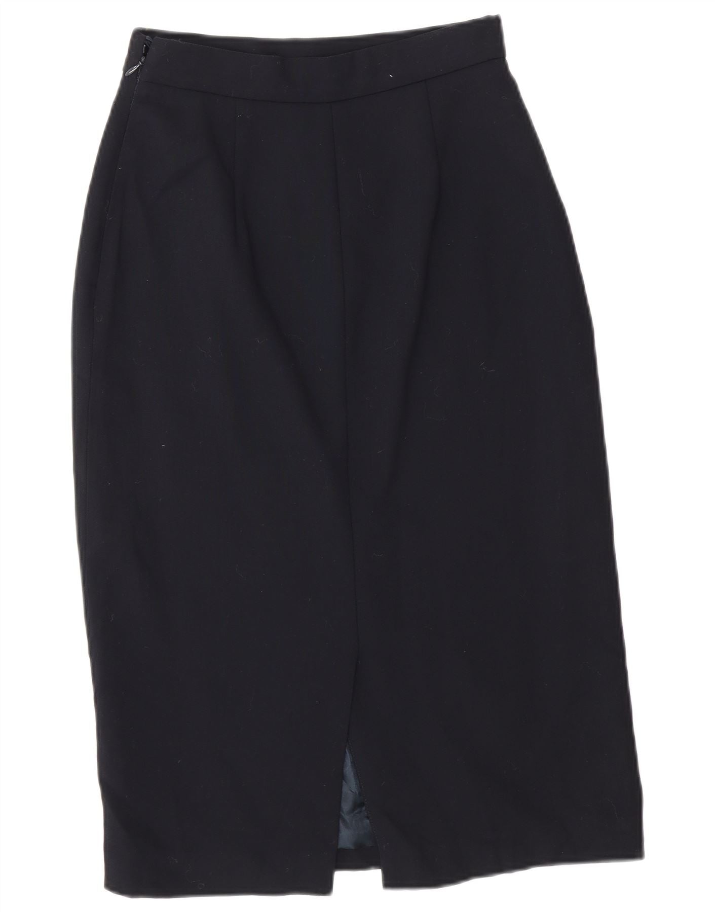 PRADA Damen-Bleistiftrock mit hoher Taille, Größe 40, Größe S, W24, Marineblau, klassisch