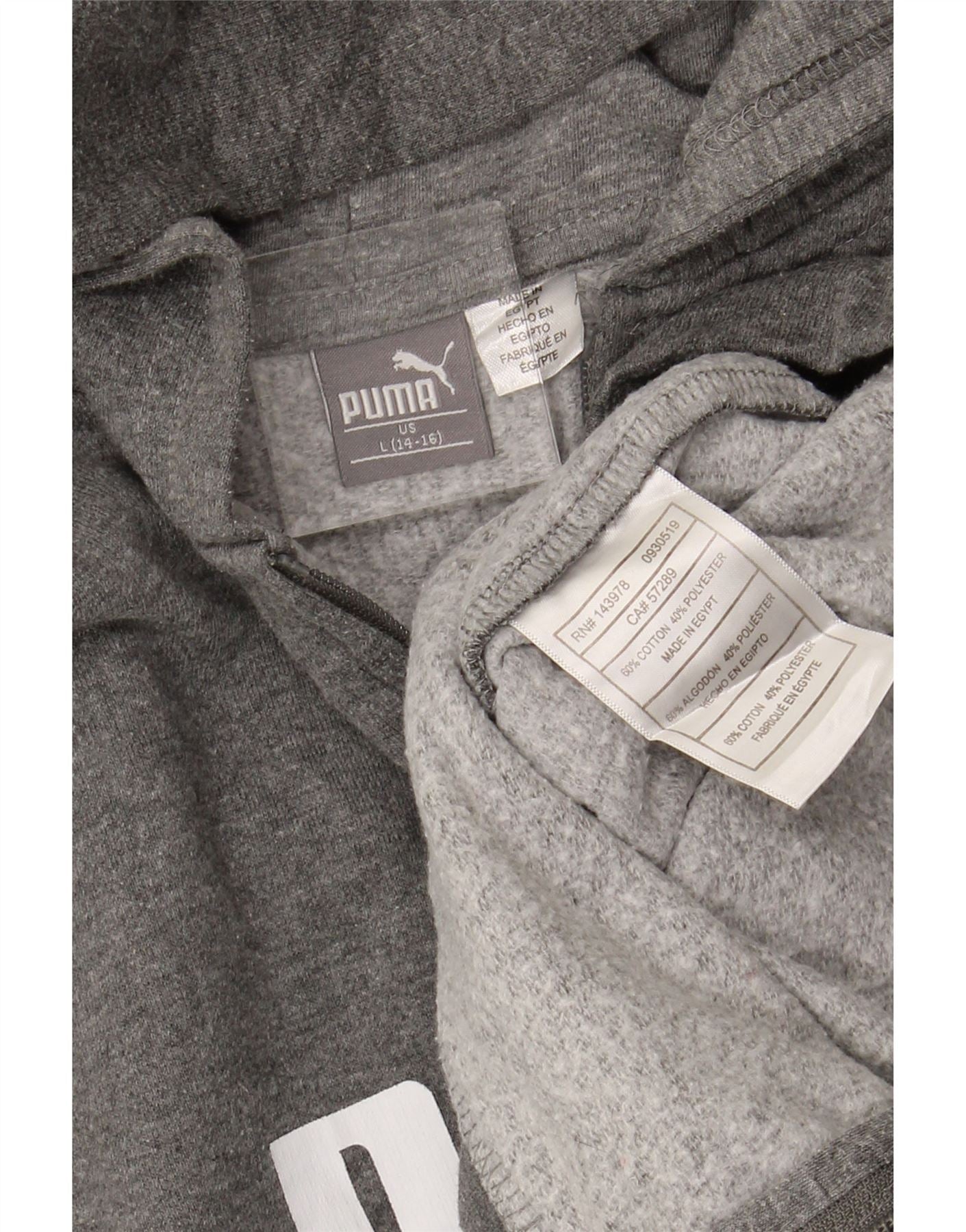PUMA Jungen-Kapuzenpullover mit grafischem Reißverschluss, 12–13 Jahre, groß, graue Baumwolle