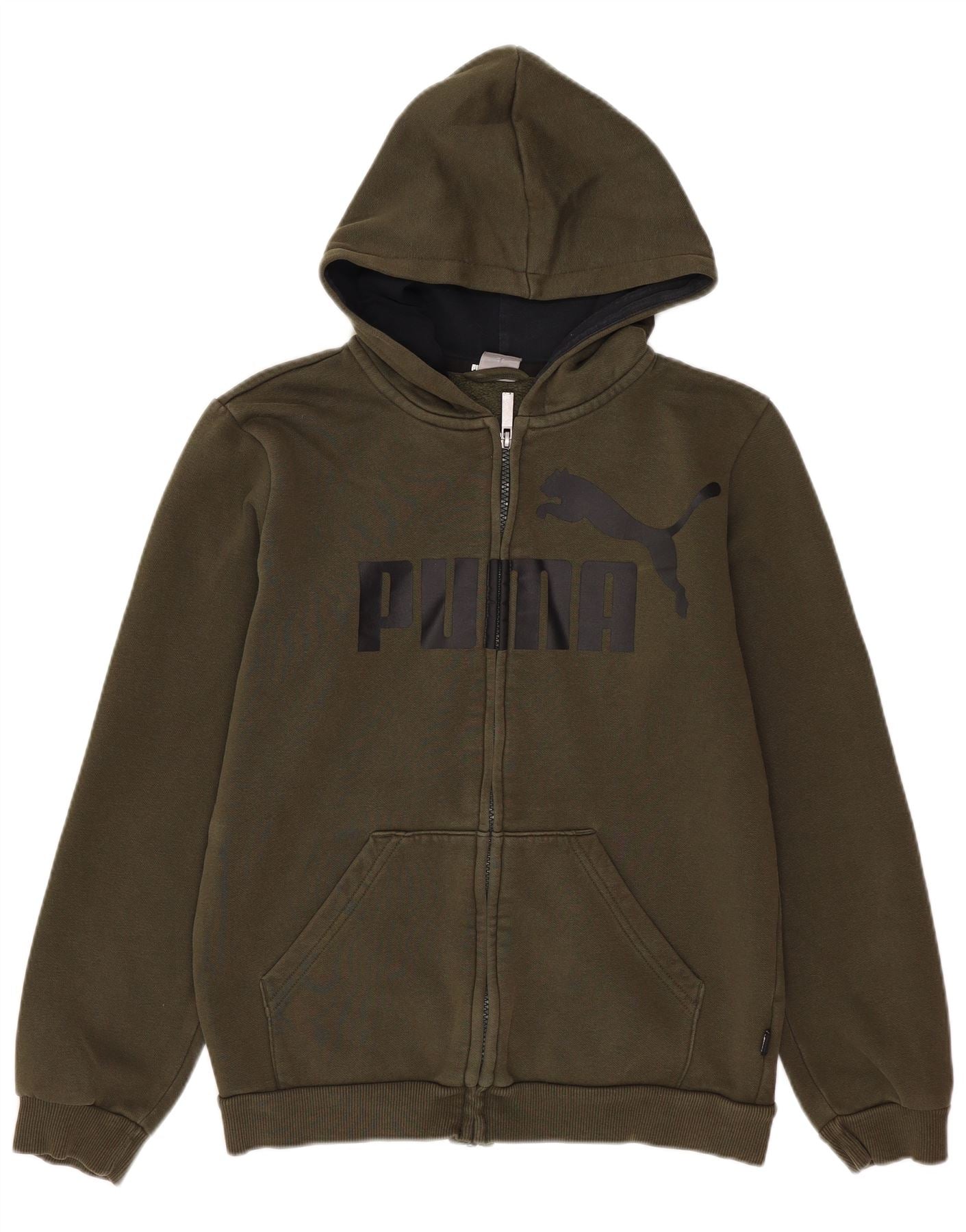 PUMA Jungen Graphic Zip Hoodie Pullover 13-14 Jahre Khaki Baumwolle