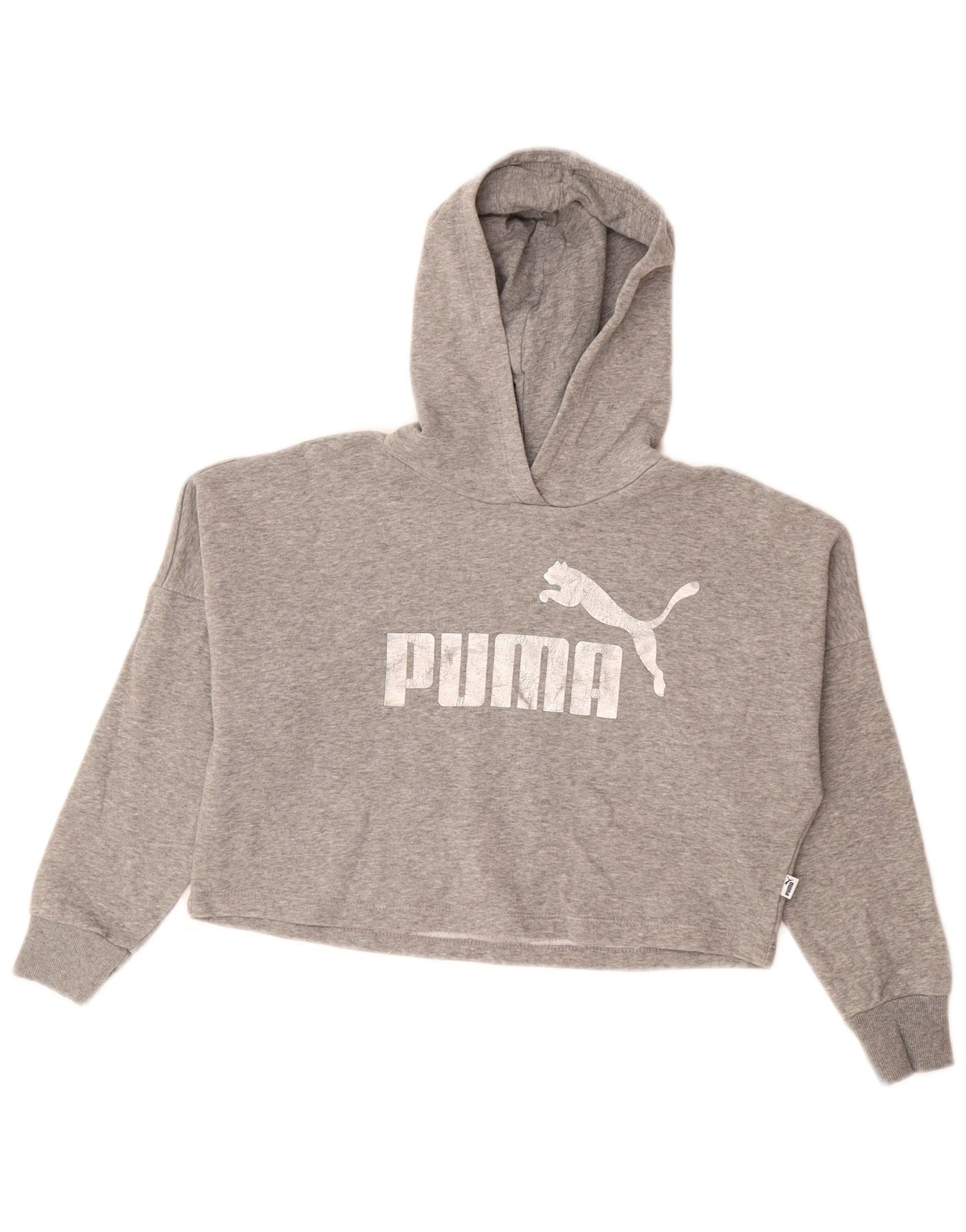 PUMA Mädchen Crop Graphic Hoodie Pullover 9–10 Jahre Graue Baumwolle