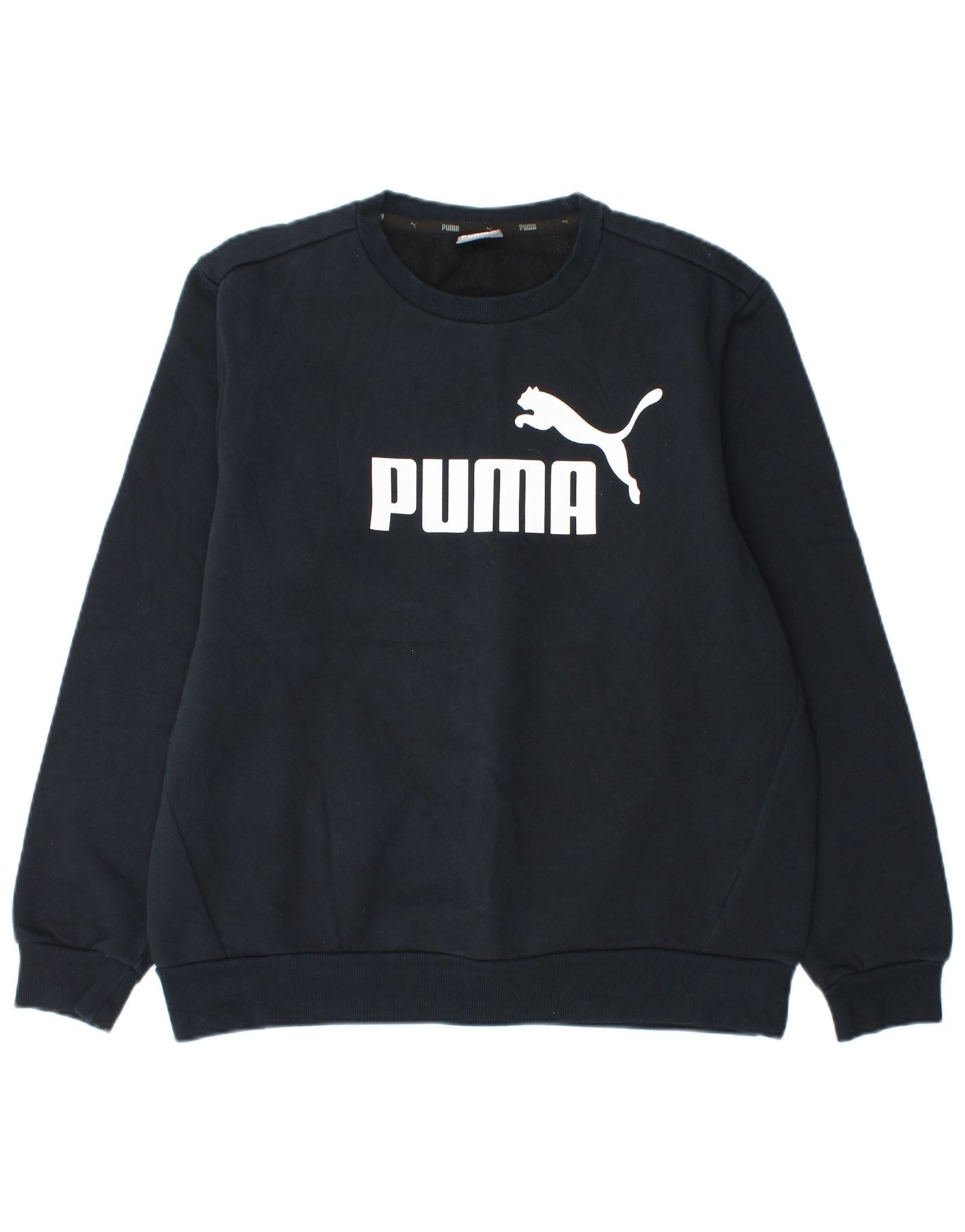 - KI-Beschreibung: Dieser Sweatshirt-Pullover für Herren von Puma ist aus einem bequemen marineblauen Mischgewebe mit weicher Fleece-Textur gefertigt. Es verfügt über einen klassischen Rundhalsausschnitt und lange Ärmel und bietet eine normale Passform für den Alltag. Das Design des Pullovers wird durch eine auffällige weiße Puma-Logografik auf der Brust hervorgehoben. Gerippte Bündchen und Saum sorgen für einen gepflegten Abschluss. Dieses Stück kombiniert Dehnbarkeit und Komfort und eignet sich daher ideal für lässige Stylings.