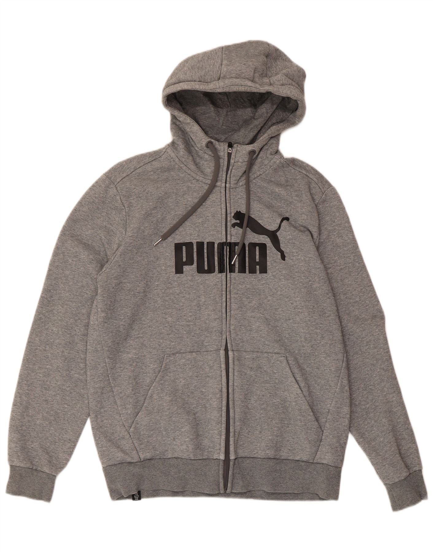 PUMA Herren-Kapuzenpullover mit grafischem Reißverschluss, mittelgrau gefleckte Baumwolle
