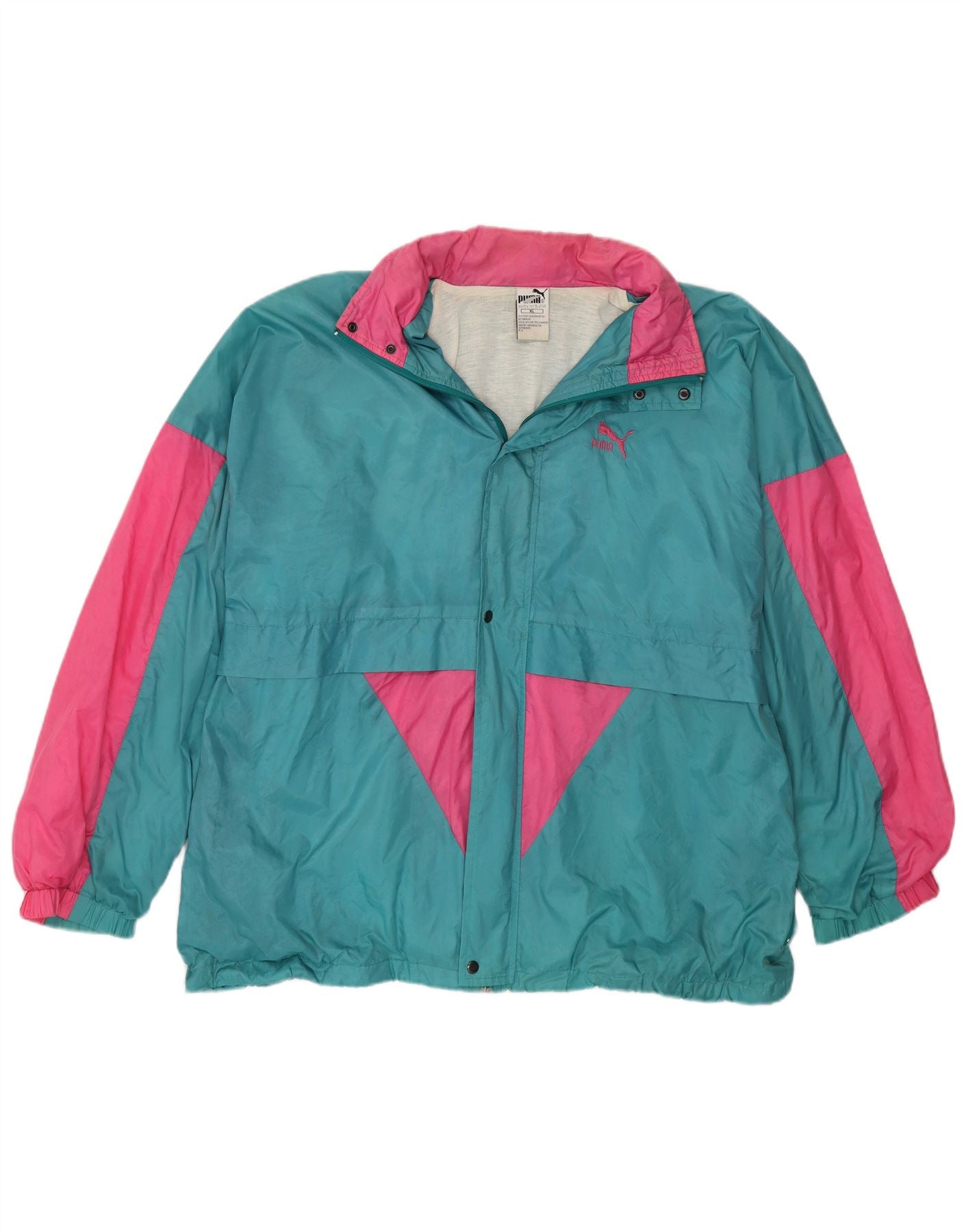 PUMA Herren-Regenjacke mit Kapuze, UK 42, XL, blaues Colourblock-Nylon