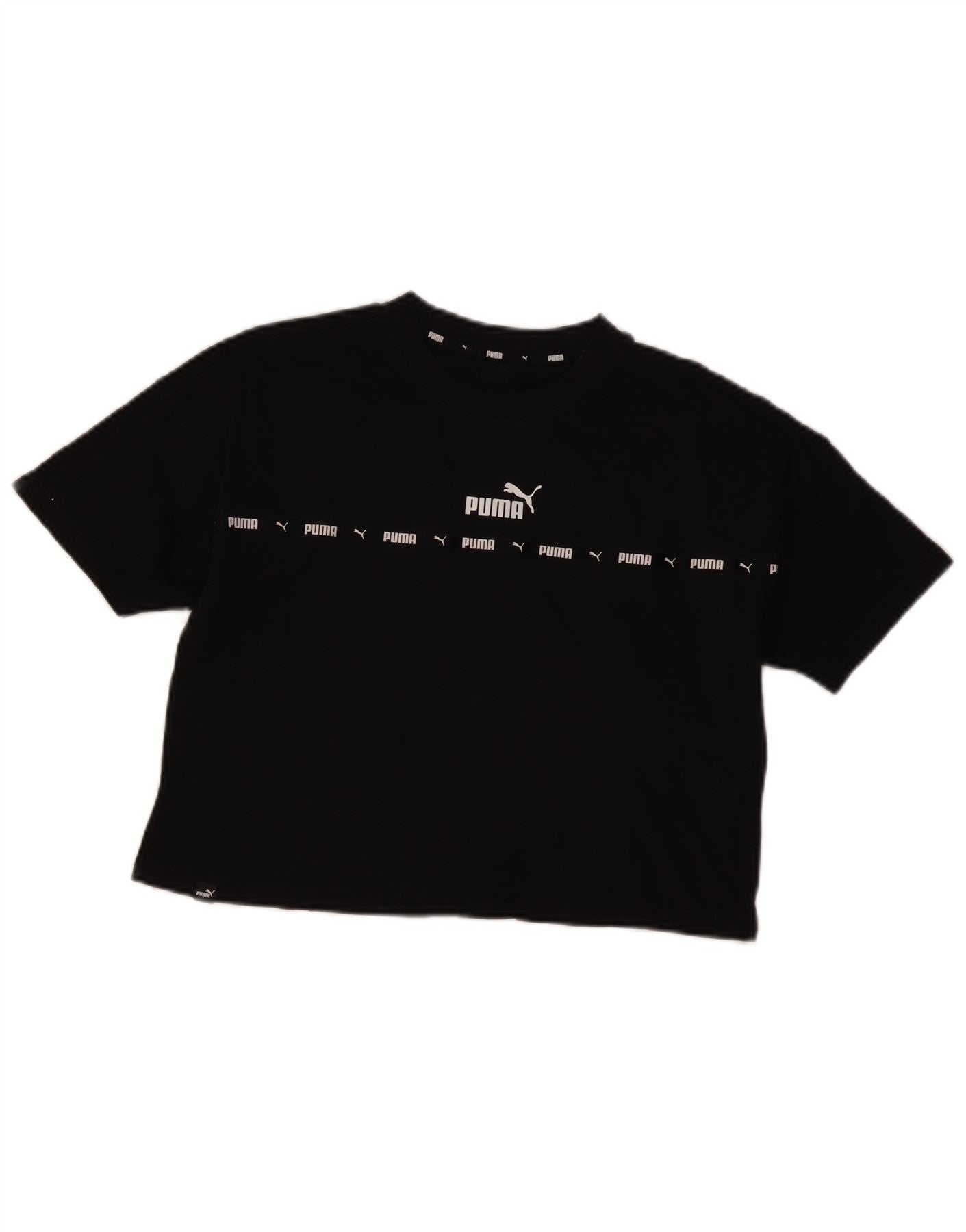 PUMA Damen Crop Oversized Graphic T-Shirt Top UK 10 Small Schwarz Baumwolle