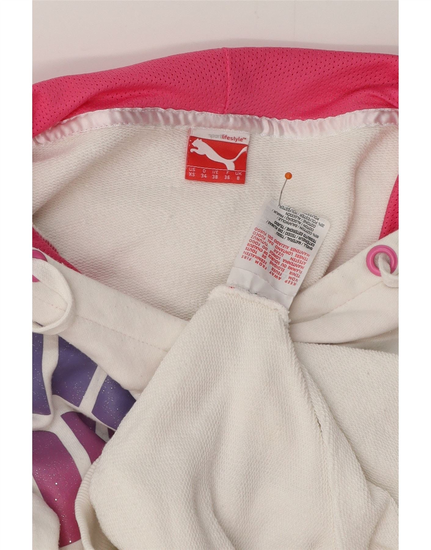 PUMA Damen Graphic Hoodie Pullover UK 8 Small Weiße Baumwolle