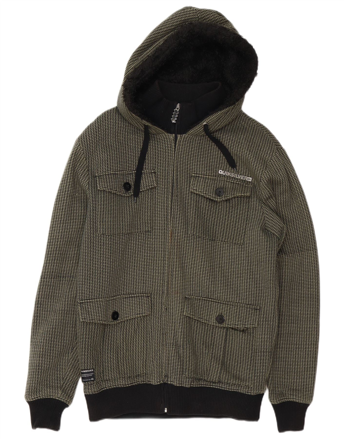 QUIKSILVER Herren-Utility-Jacke mit Kapuze, UK 38, Mittelgrün mit Hahnentrittmuster